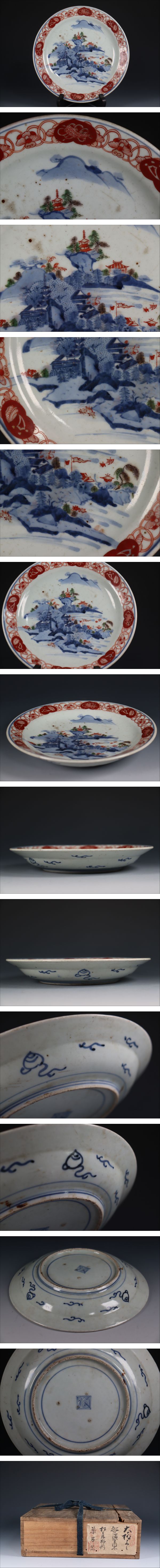 | 商品説明 | 商品名:蔵出し品 古伊万里 江戸期 赤絵染付 山水図 皿 付属品:箱あり。 サイズ:高さ3,5cm、口径21,7cm、高台12cm。 状態:経過のスレがございます。 |