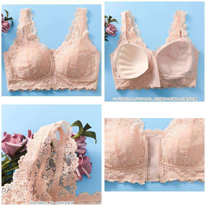 | 商品説明 | ・・バストを心地よくホールド♪フロントファスナー仕様のノンワイヤーブラ。 ・締めつけ感のないノンワイヤー仕様!背中ホックや窮屈感が苦手な方にぴったり。 ・ナイトブラやマタニティブラとしてもおすすめ♪ ・フロントファスナーで着脱がラクチン。授乳時も便利! ・バストの揺れを抑え、横流れを防止する脇高設計。 ・立体構造のパッドでバストをキレイ魅せ♪ ・パッドは取り外しができるから、お洗濯時の型崩れの心配が不要。 ・太めの肩紐で、肩への負担を軽減。 ・通気性の良い素材を採用しており、オールシーズン快適な付け心地◎ ・上品な小花柄のレースデザインで、エレガントな雰囲気を演出♪ |