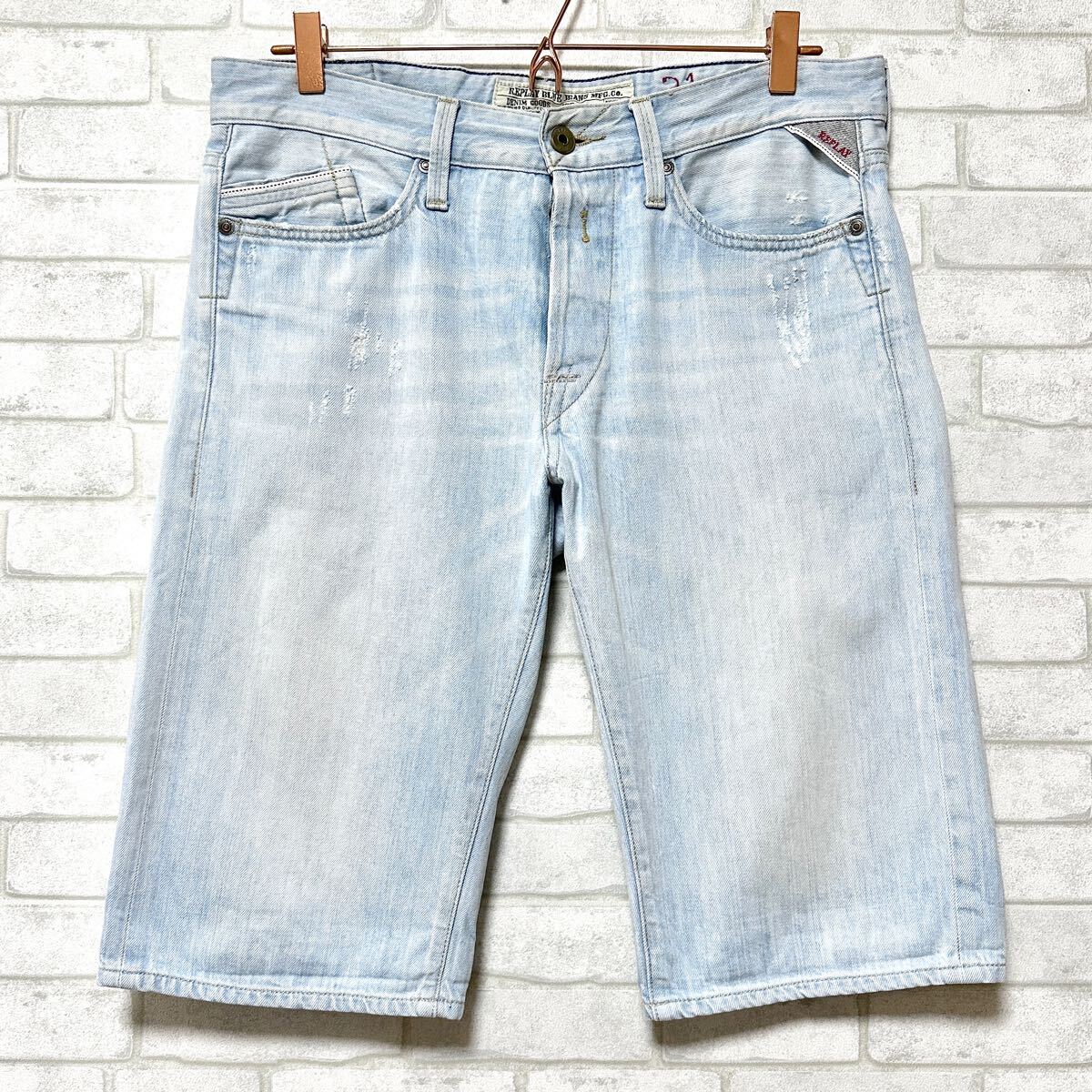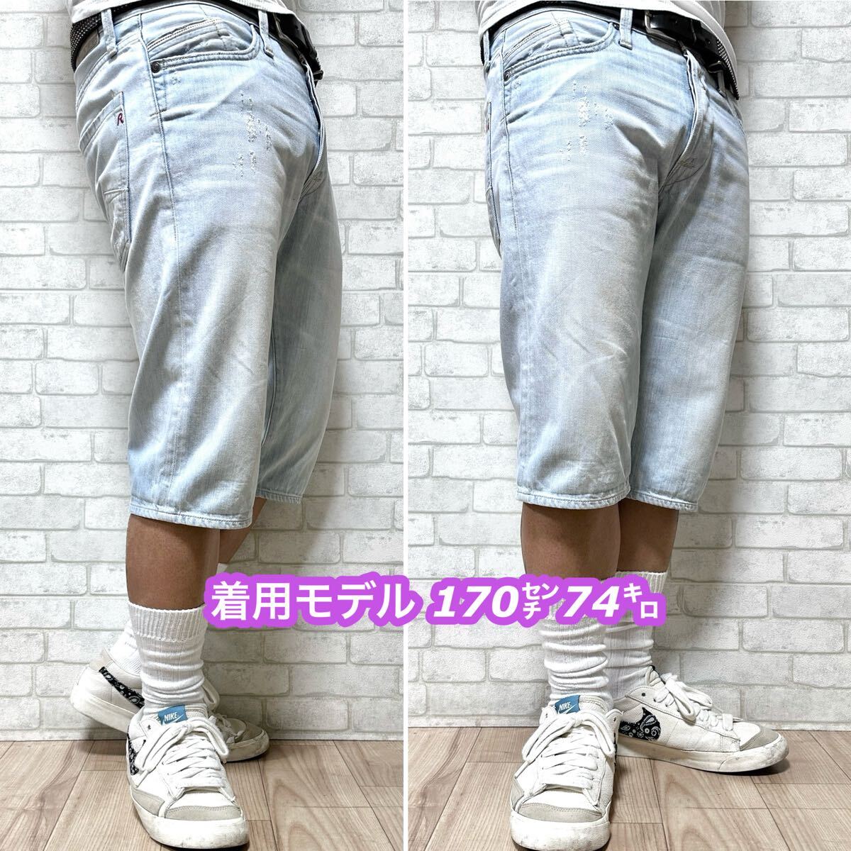 ☆ユーズド加工、ウォッシュ加工を施した雰囲気抜群のデニムショーツ。更にバックにはレザーパッチを配置。また、ロゴ入りのボタンやリベット、ピスタグなどを配置した細部までこだわりの詰まったアイテムです。