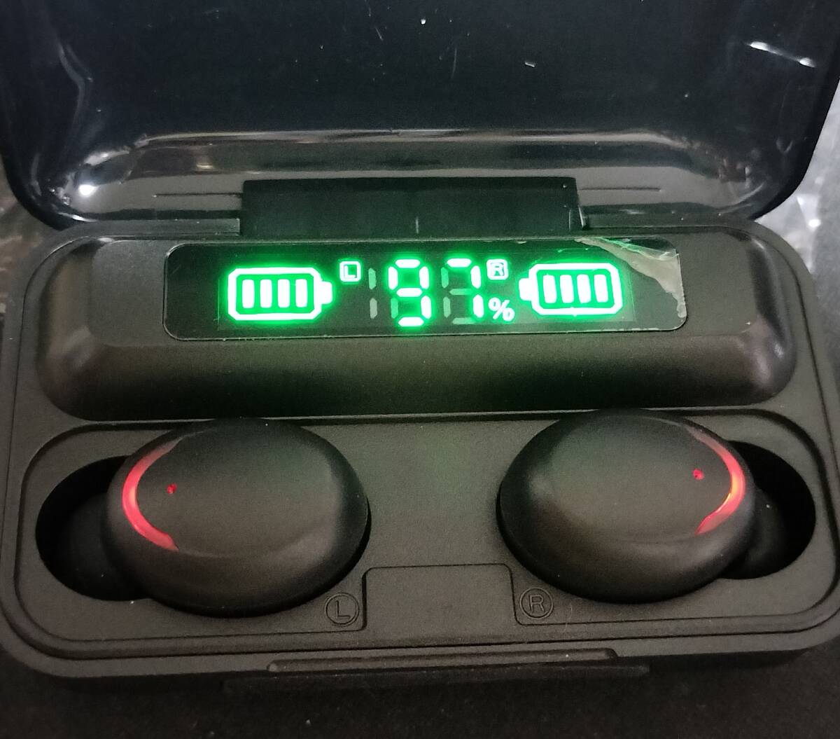 画像1~3のように、充電ケース本体と左右のイヤホンの電池残量が表示されます。