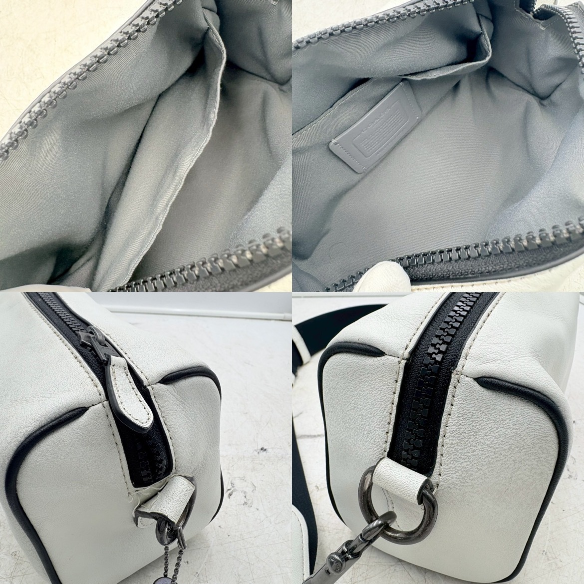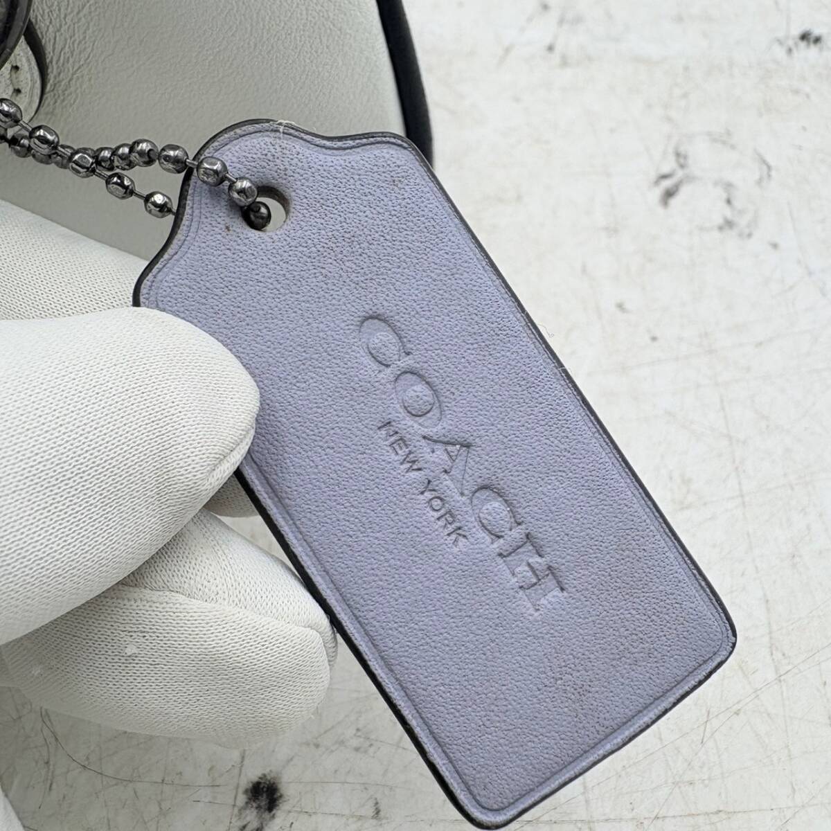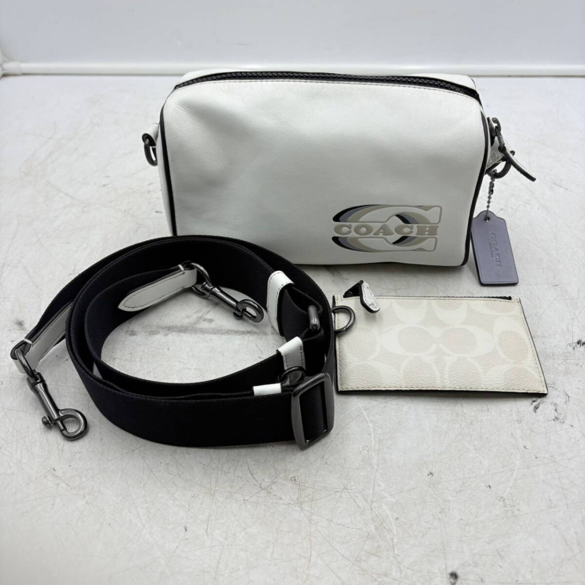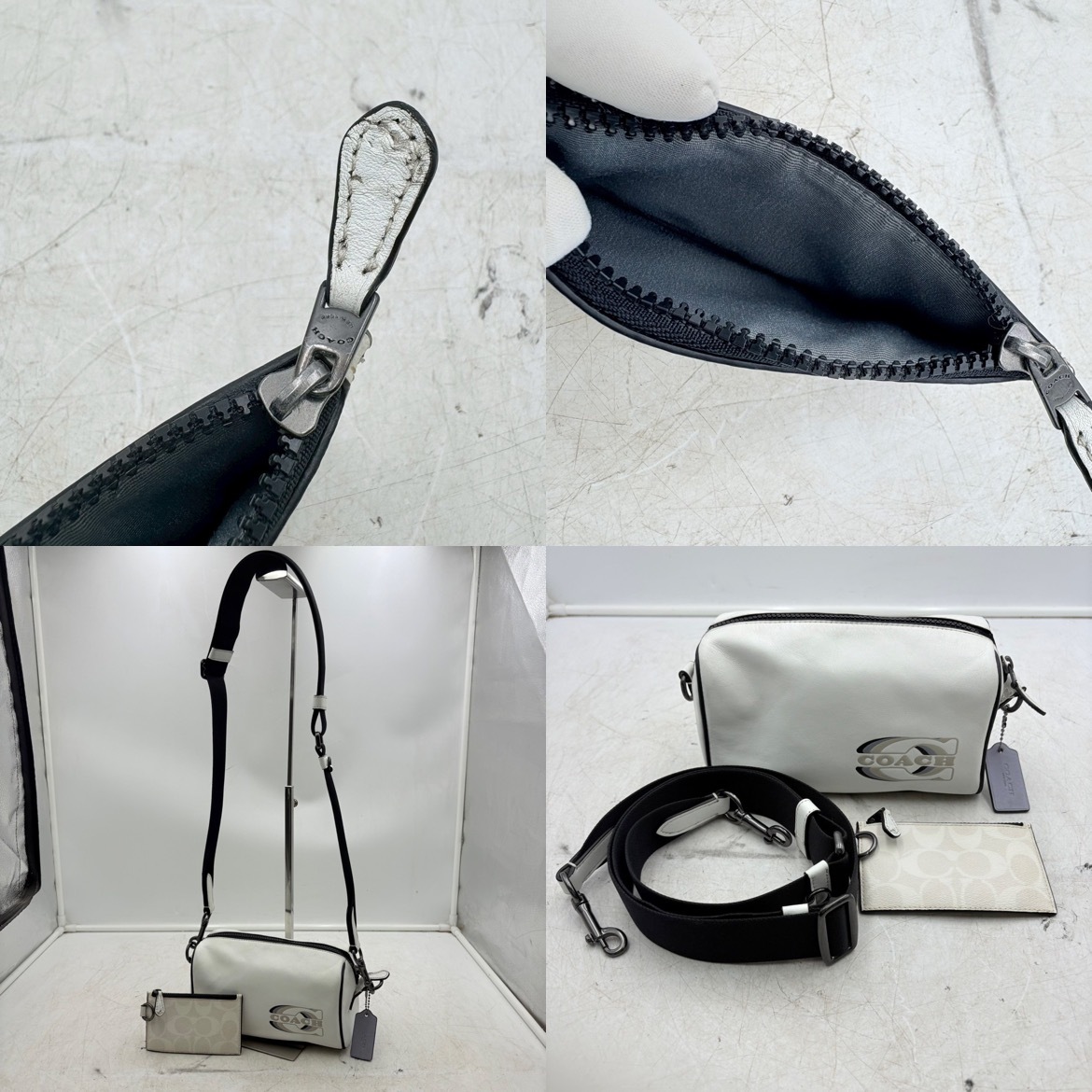 COACHのショルダーバッグはシンプルで上品なホワイトレザー×シルバーロゴが印象的。さらに同ブランドのカードケース付き