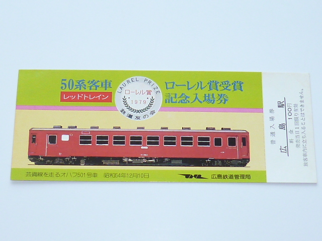 ※ 記念切符★50系客車 ローレル賞受賞 記念入場券★レッドトレイン★広島鉄道管理局★昭和54年12月10日★1枚★広島駅発行★2725 ※ |