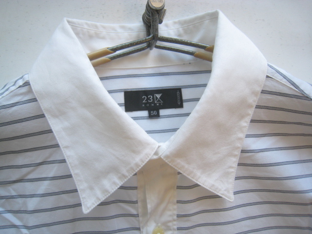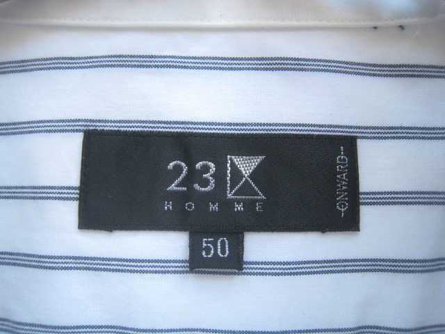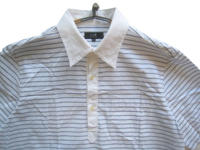 美品日本製!! 23区HOMME 胸ポケット付き ボーダー柄半袖クレリックプルオーバーシャツ