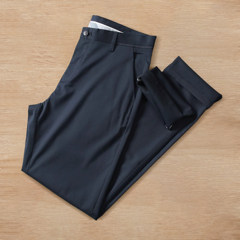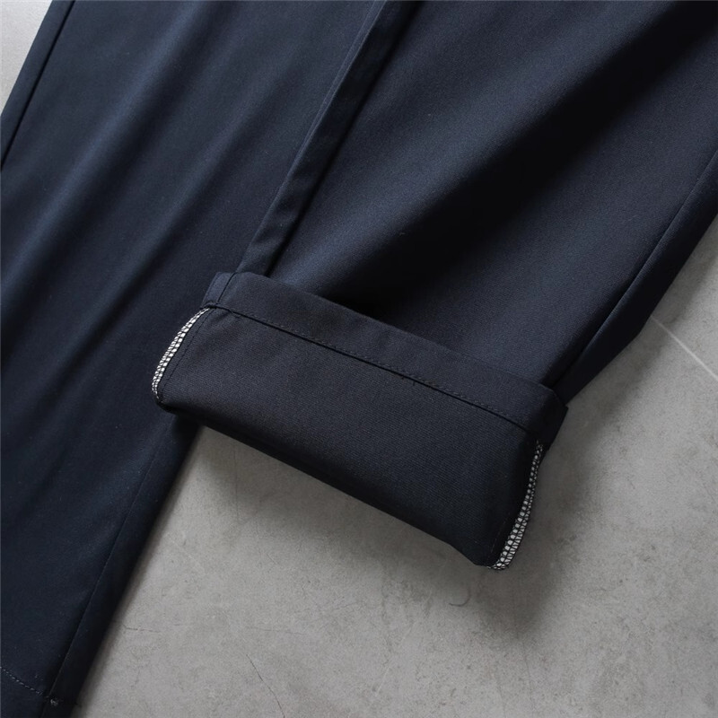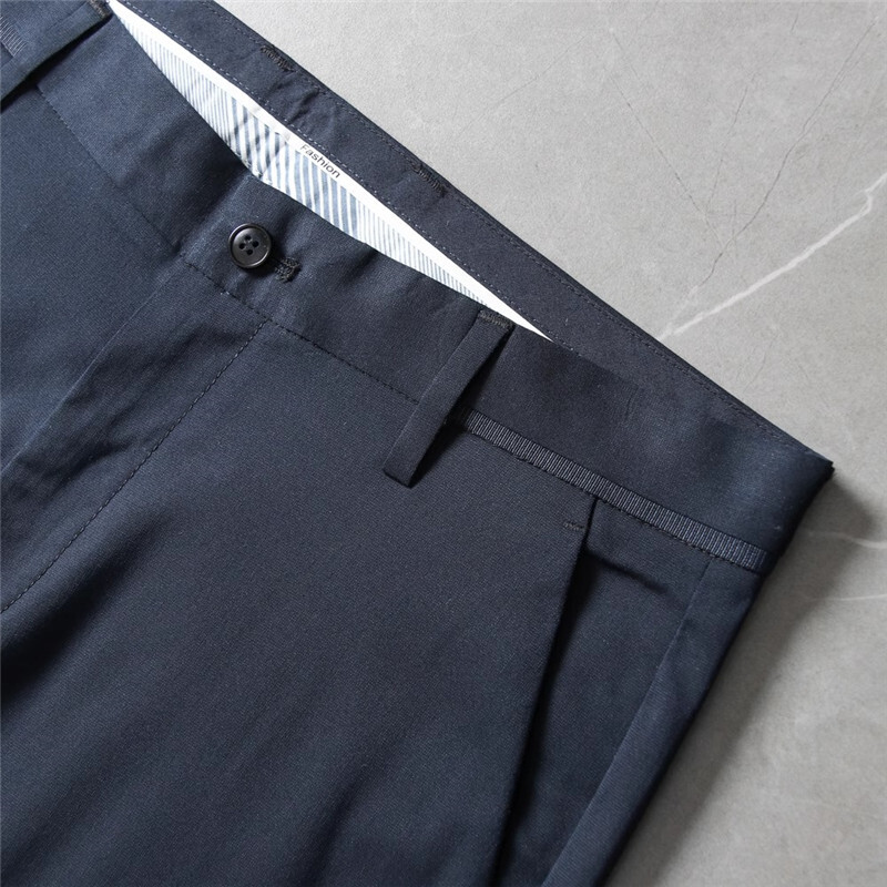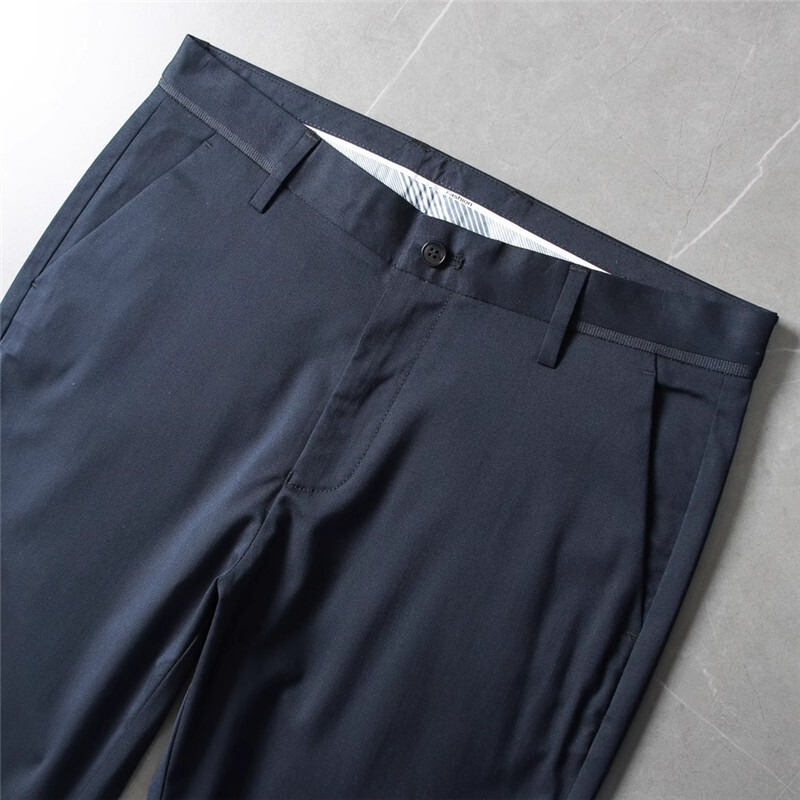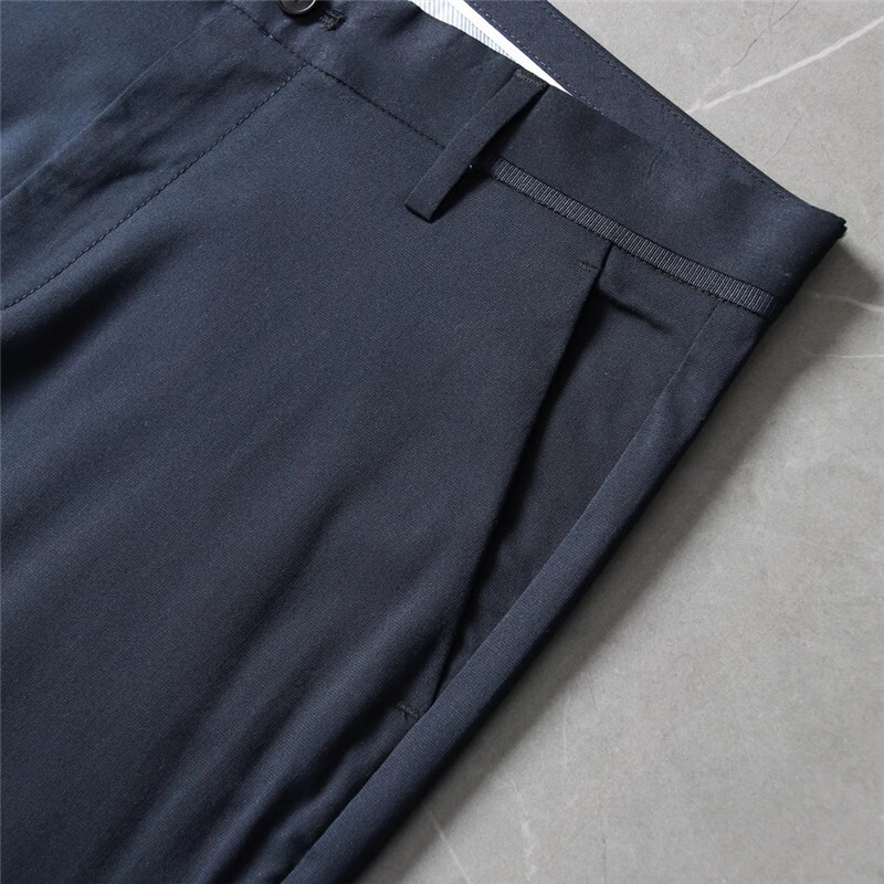 W0647-L 紺色 新品 上質 シルク混 スラックス メンズ サマー  ゴルフ 春夏 接触冷感 ズボン イージー パンツ ノーアイロン  薄手 紳士 テーパード