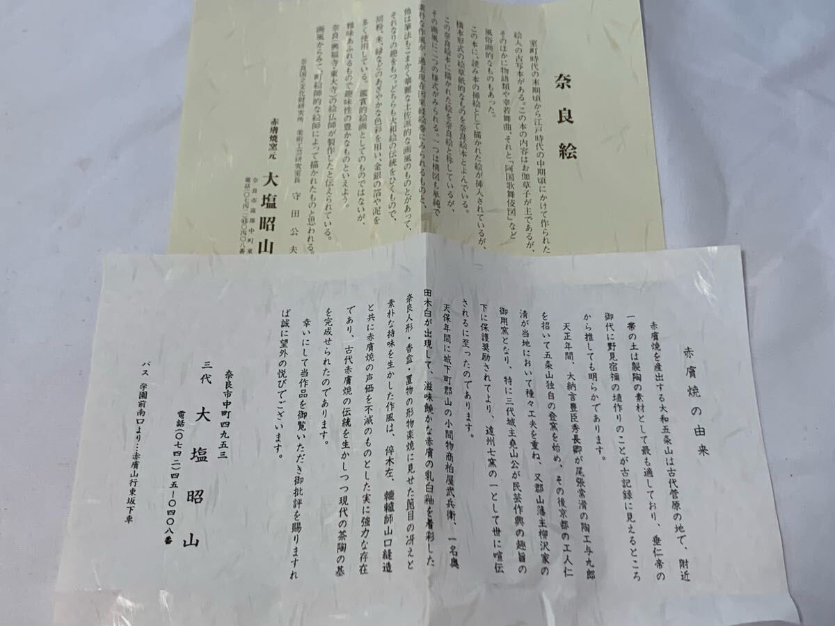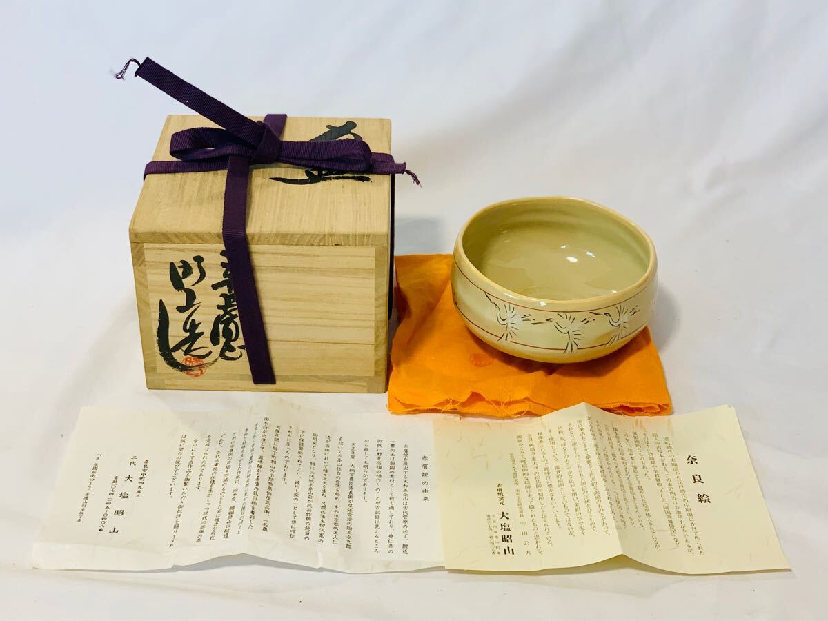 | 赤膚焼 大塩昭山 奈良絵 抹茶椀 栞 陶印有 茶道具 茶事 茶器 茶具 赤膚山 赤ハダ 在銘 古玩 茶道具 抹茶碗 茶道 刻印 書付 共箱 共布 未使用品 | |||