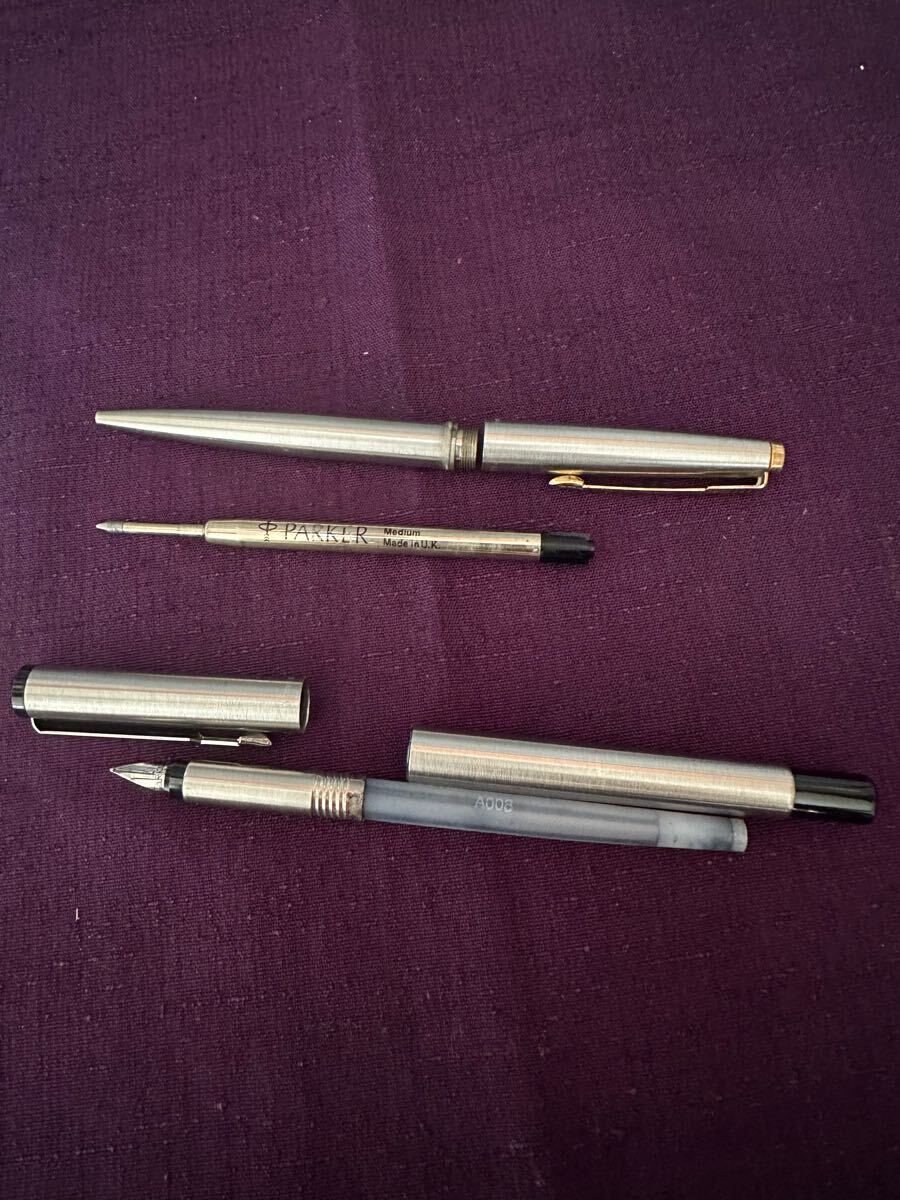 万年筆 ボールペン PARKER 筆記用具 文房具2本セット中古品、ボールペンは正常使用です、万年筆のは墨水ないため書は出来ません。