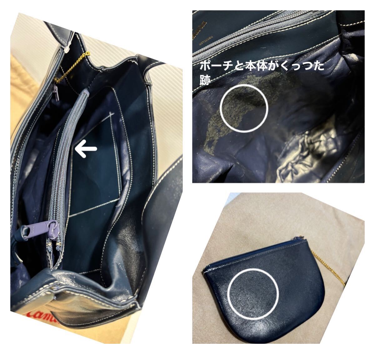 内部 ポーチと本体がくっつたベタ付き跡あり