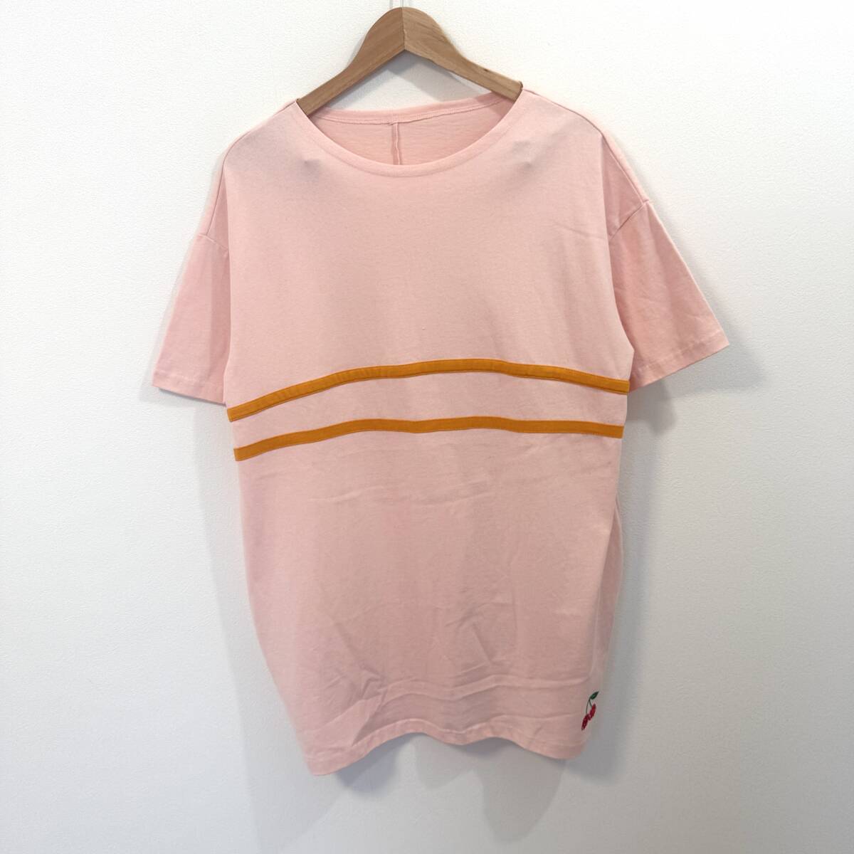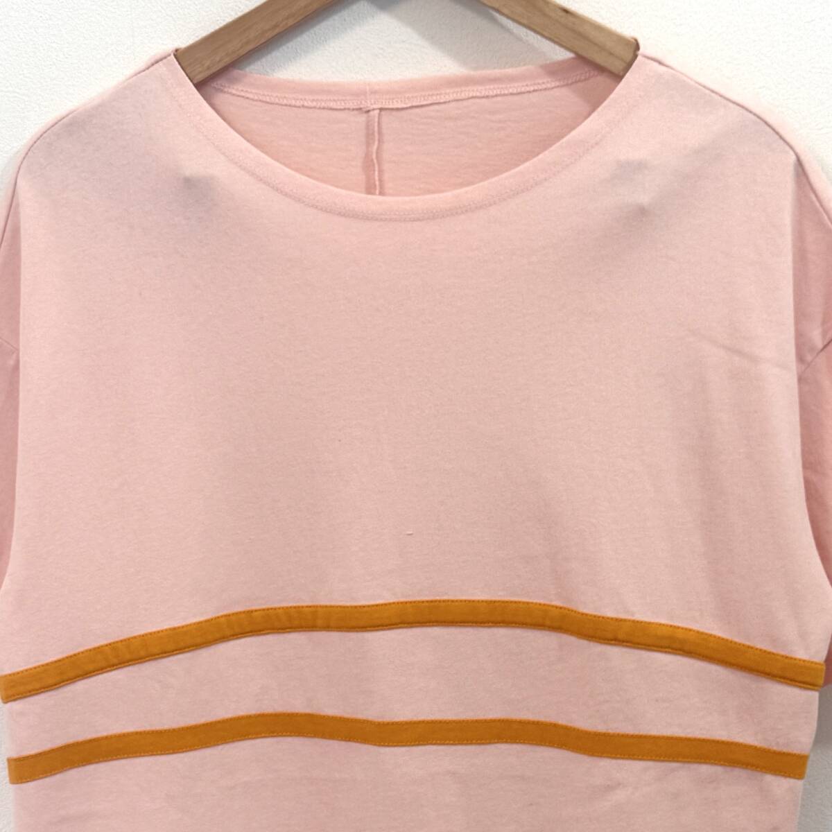 f3031ii PERSON'S(パーソンズ ノブオ イケダ)サイズM Tシャツ ライン 半袖 プルオーバー タグ付き ピンク レディース 綿100%