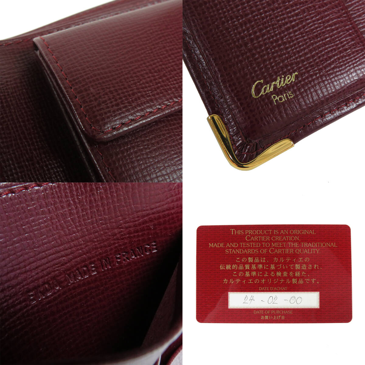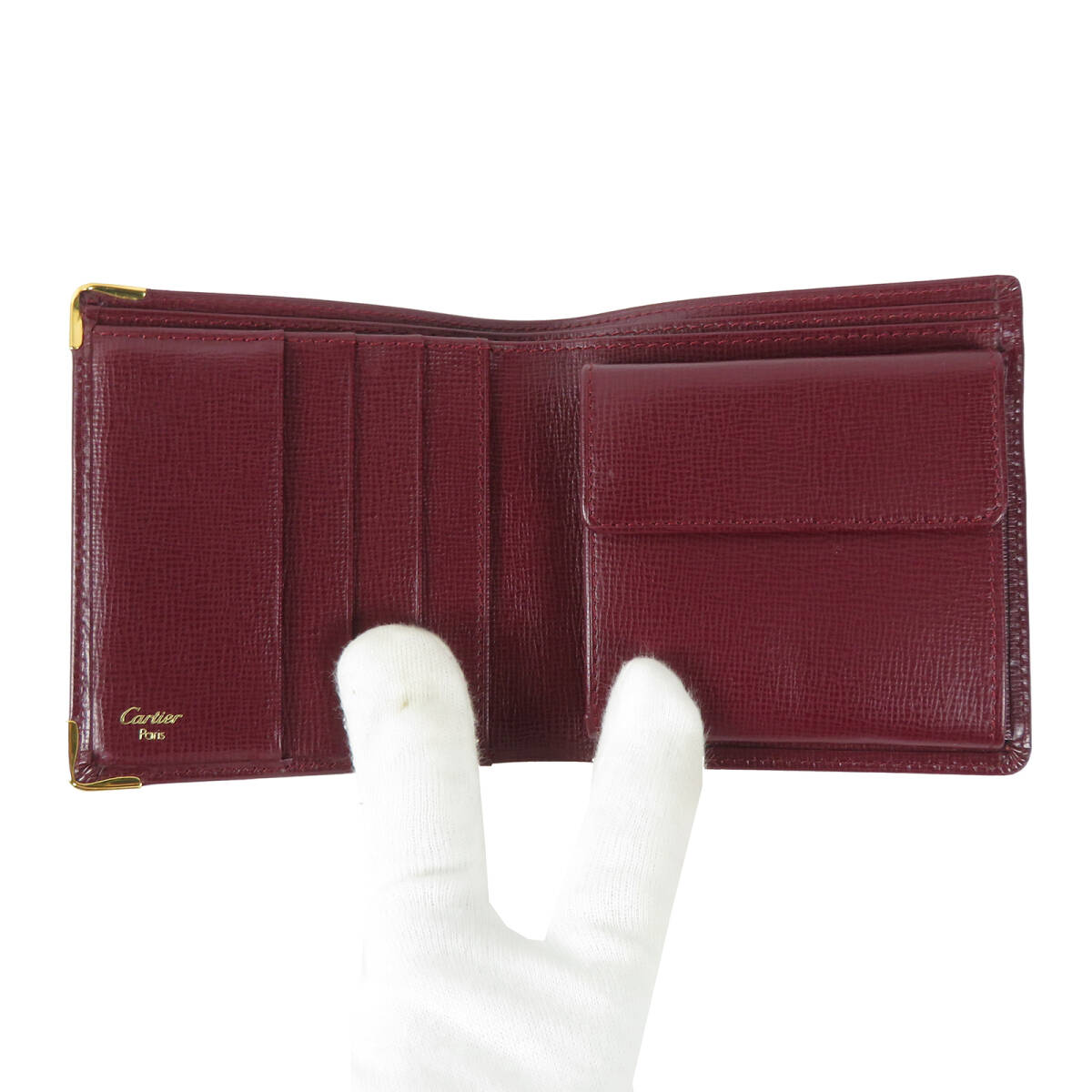 Cartier カルティエ マスト 二つ折り財布 ボルドー カーフレザー 小銭入れ付き |