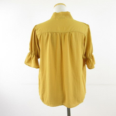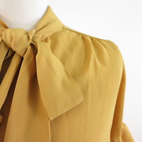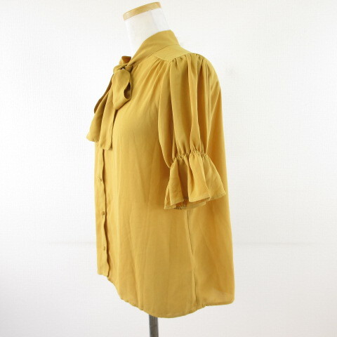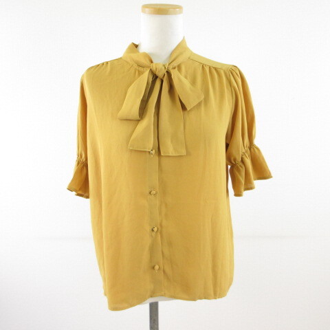 アースミュージック&エコロジー EARTH MUSIC & ECOLOGY ボウタイシャツ ブラウス 半袖 からし色 黄 F *T359 レディース