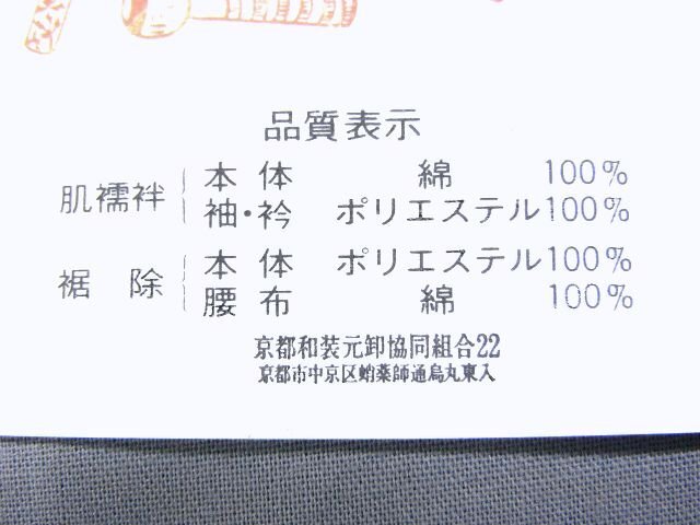 肌襦袢は本体が綿100%で袖と衿がポリエステル100%のお品です。