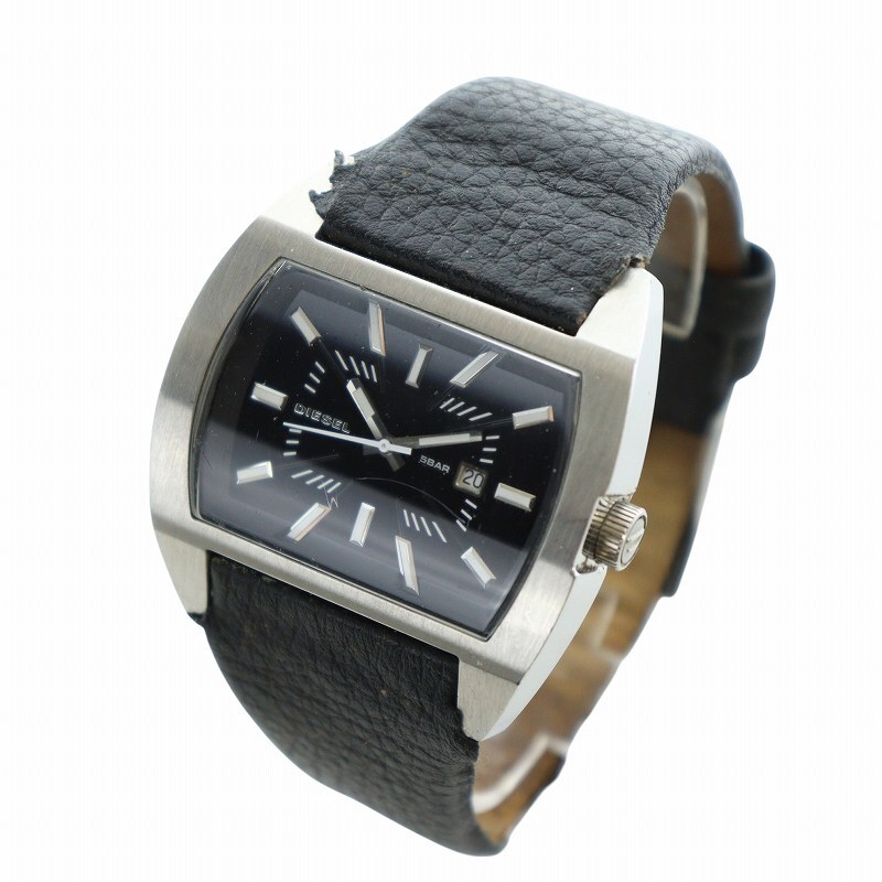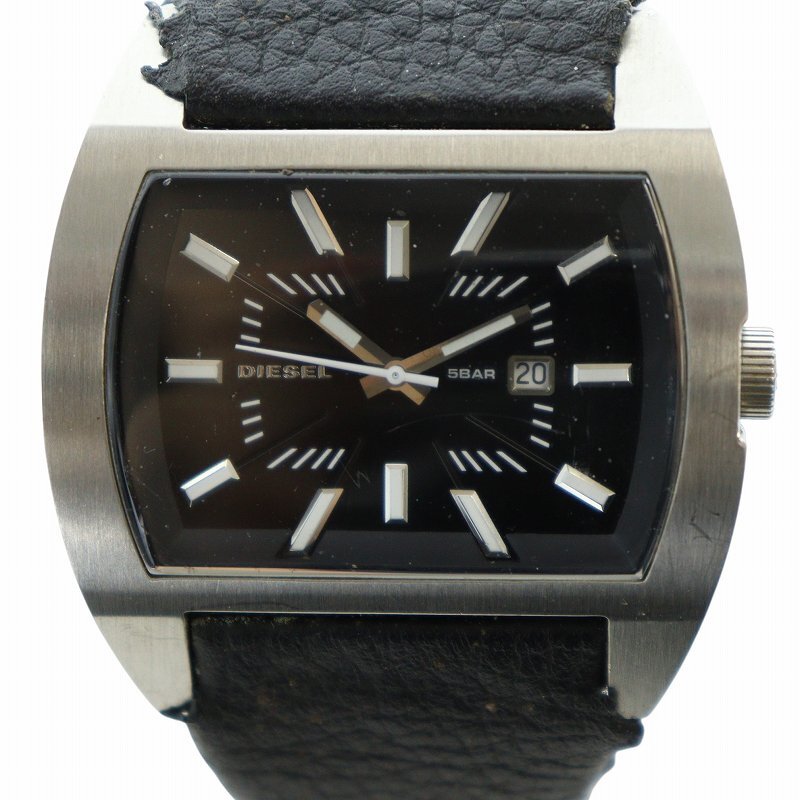 ディーゼル DIESEL 腕時計 ウォッチ クォーツ スクエア 黒文字盤 ロゴ カレンダー付き シルバー色 DZ-1116 ■GY18 /MQ メンズ