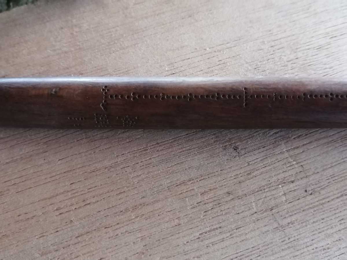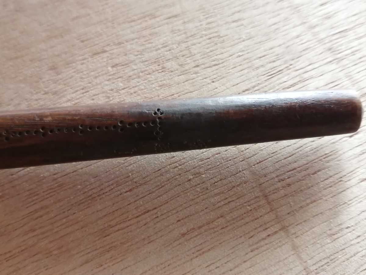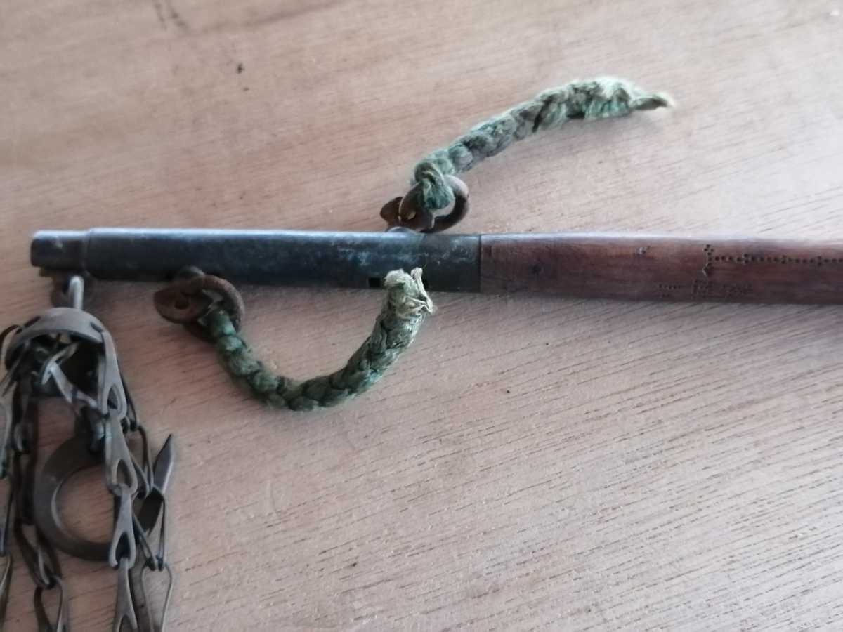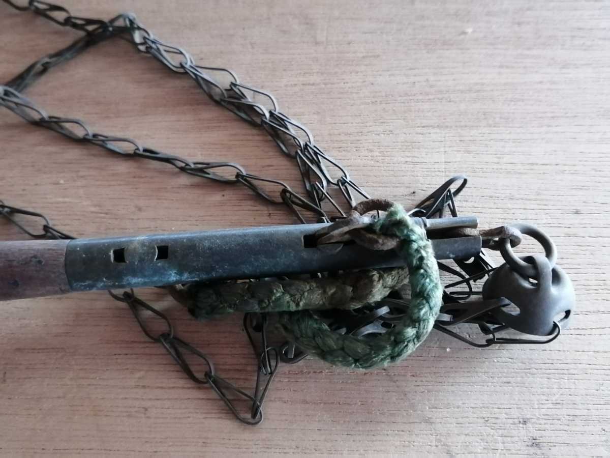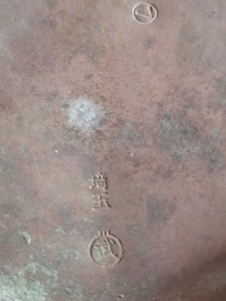 明治時代の丸皿秤です。銅の丸皿が三角形の銅鎖が繋がっています。緖紐は二ヶ所、皿に〇ヘ、埼玉〇武の刻印があります。時代を経てまだ使用に耐えうる道具です。皿径12㌢長さ43.5㌢重さ166㌘