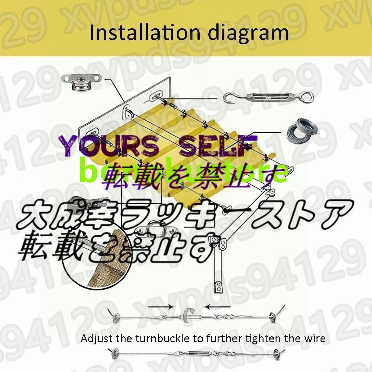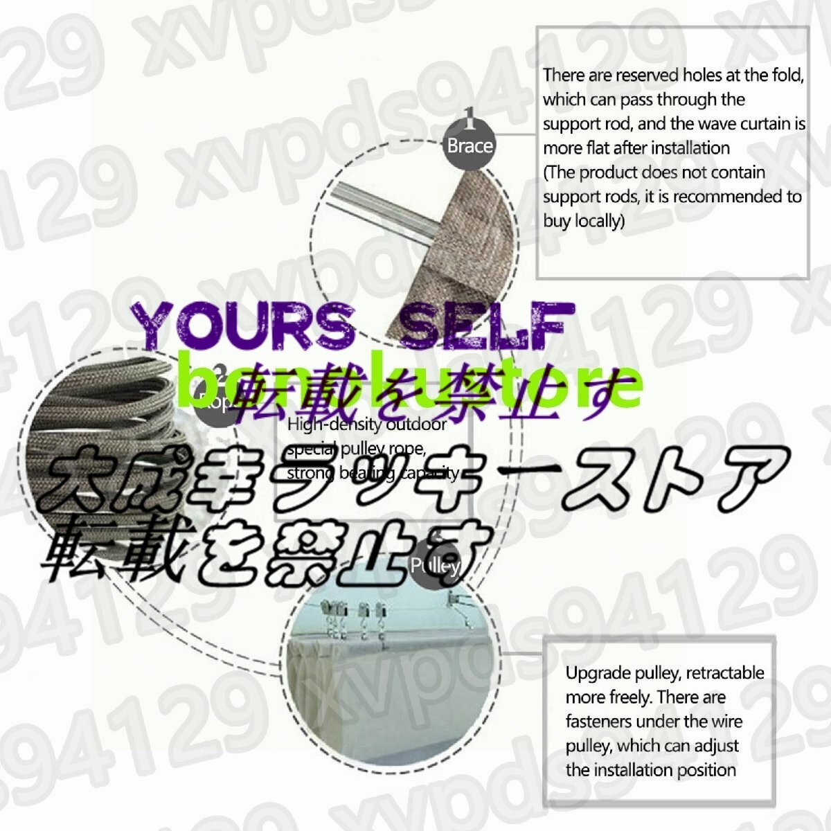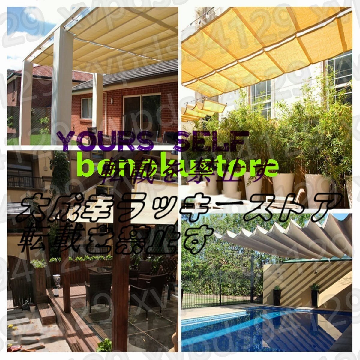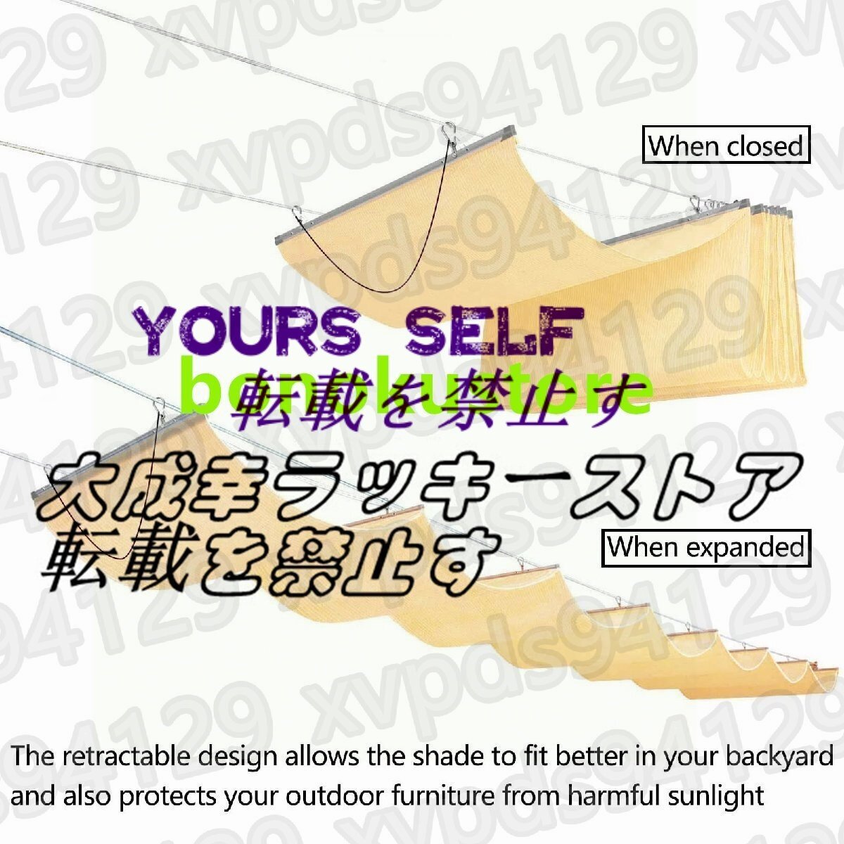 - 高密度ポリエステル素材は、紫外線を見事にブロックし、あなたのエリアを保護し、遮断を提供するのに役立ちます。- パーゴラシェードカバーは、強風や大雨が来たときに、それを下ろすことができる超便利なもので、そのサイズと形状はあなた次第です。プロダクト変数:モデル PF-230406製品名 開閉式シェードカバーキット/屋外遮光装置ニュアンスです: 1カラー:ベージュ素材です: HDPE(ポリエチレン)重量:2000g遮光率です: 90%外部アカウント防水指数:1000mm以下サイズ 長さ×幅(サイズはご要望に応じてカスタマイズ可能です。)計測単位です: M (1M=39.9inch(インチ))。(ヘミングのため、すべての寸法公差は±5%です。)PRODUCT LIST:1x開閉式オーニング304 フラワーバスケット用ネジドアバックルスチールワイヤーロープ(サイズに関係する)サイドプーリー固定プーリーステンレス製パイプクランプスチールワイヤープーリー
