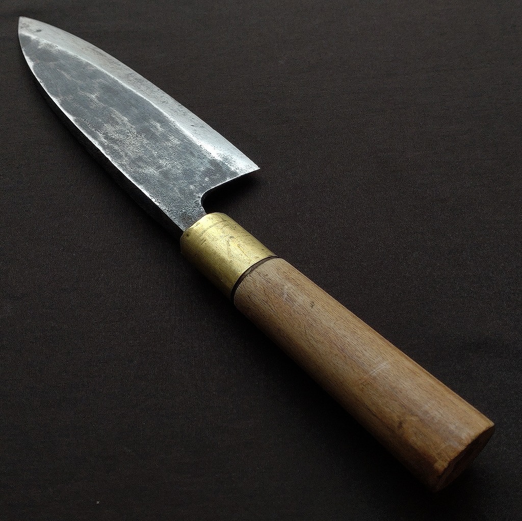出刃包丁 和包丁 黒打 堺宗一 請合 真鍮桂 刃長約173㎜ 峰厚約9.5㎜ 重量約270g 片刃 庖丁 刃物 日本製 Japanese Deba Hpcho 【6143】