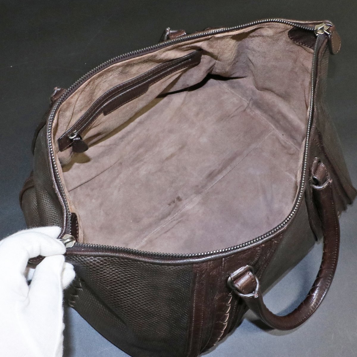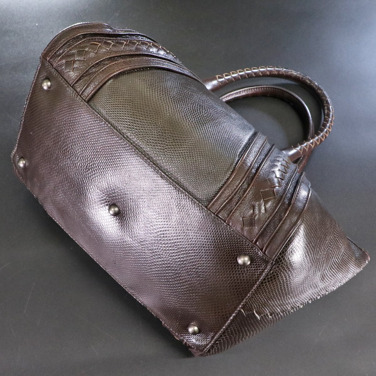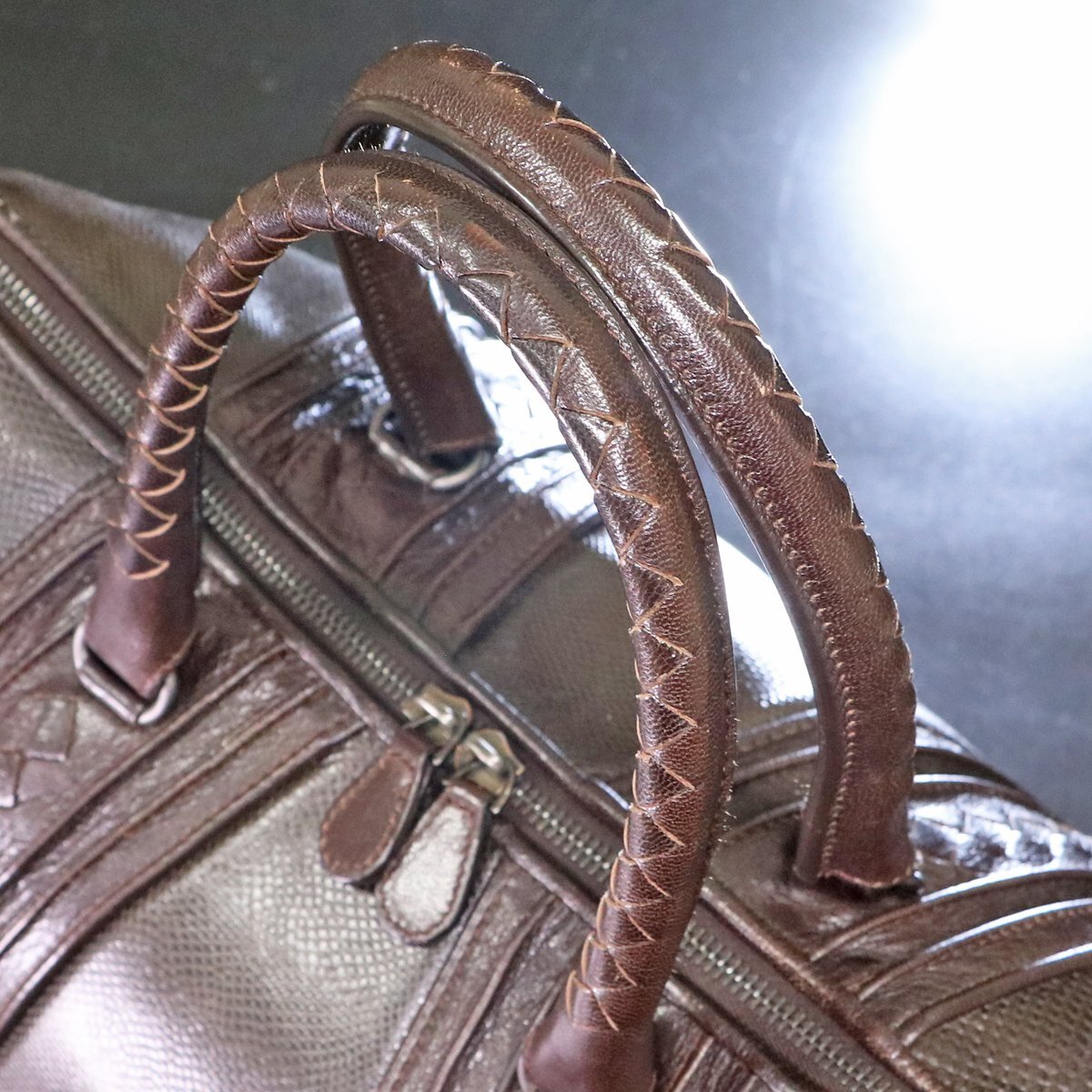 ボッテガ・ヴェネタのリザードイントレチャート ハンドバッグです。 最高級リザードレザーをベースにメゾンの代名詞、イントレチャートレザーを加えたアイコニックなハンドバッグ。 滑らかな革紐を用いて手作業で編みこまれたイントレチャートは、手に馴染みやすい質感が特徴で使い勝手も抜群です。 上質なレザーと洗練されたデザインが魅力的となっておりシッカリとしたマチ幅で見た目以上に収納性も充実した逸品。 市場流通量の圧倒的に少ないモデルなのでお探しの方も非常に多いかと思います。 |