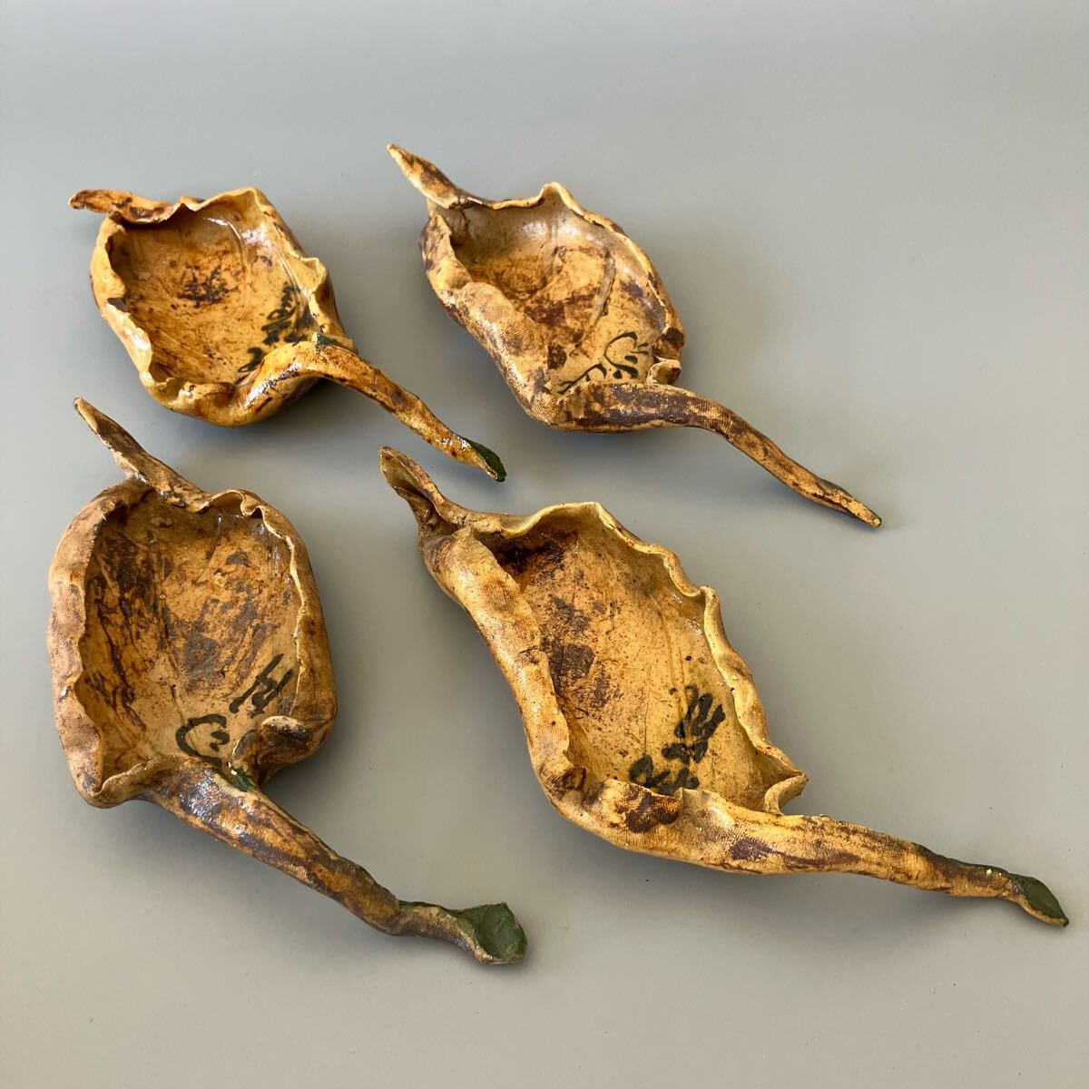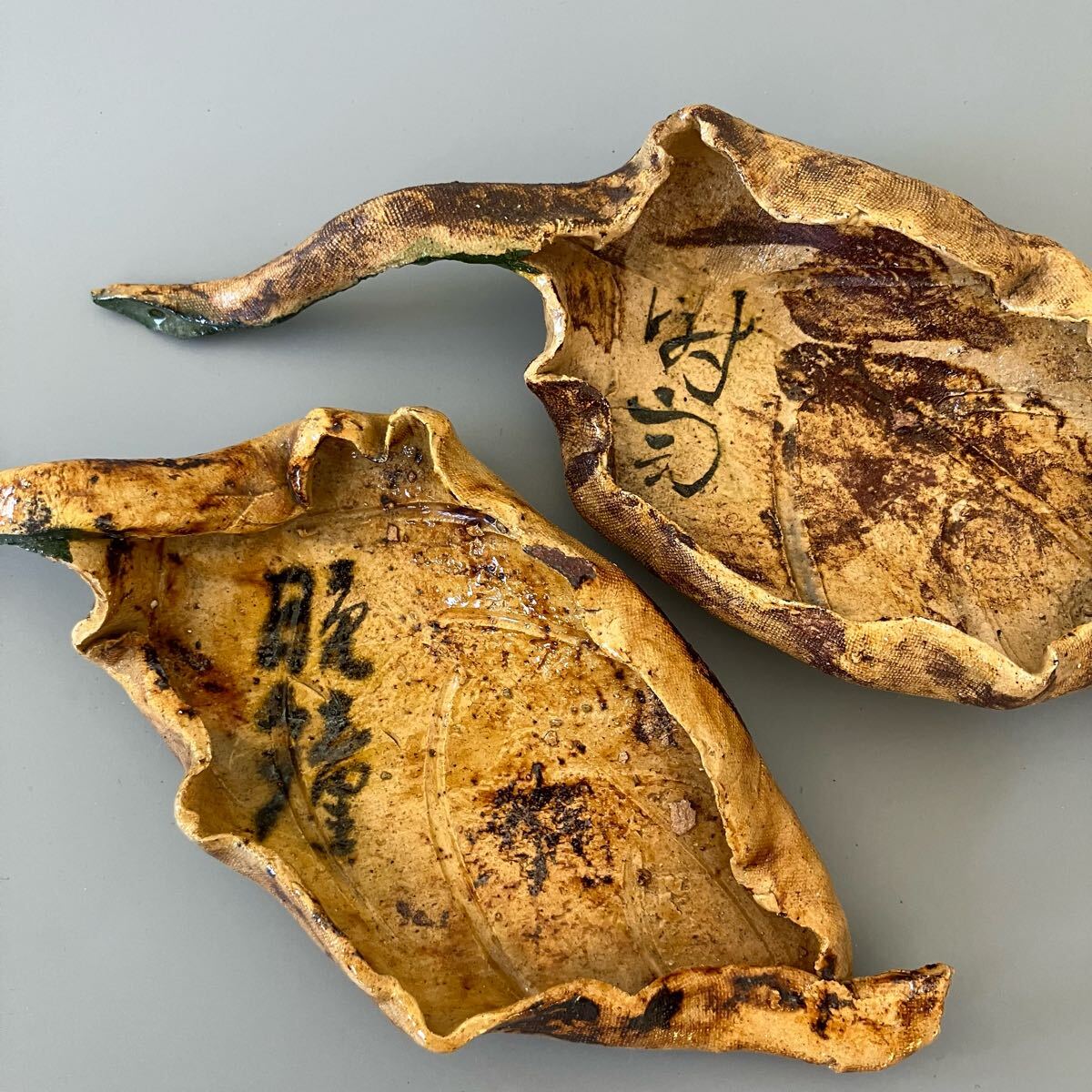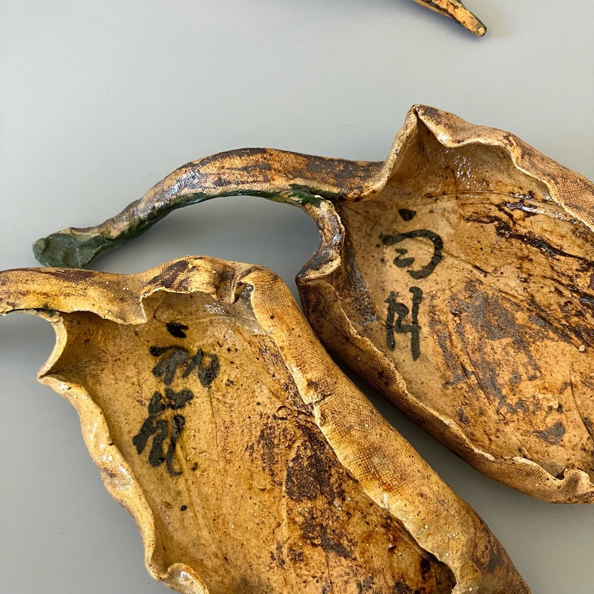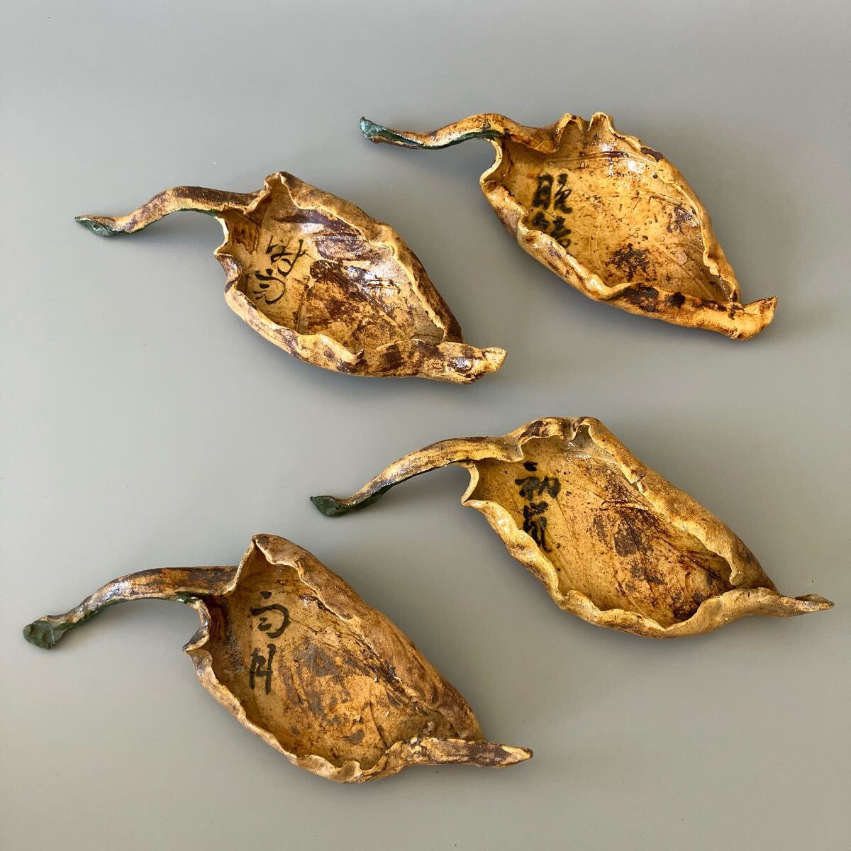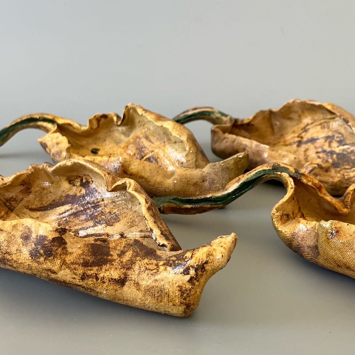 ●百貨店購入 枯れ葉 小皿 四枚/詳細不明/和食・割烹/インテリア/飾り皿/1点もの/焼物