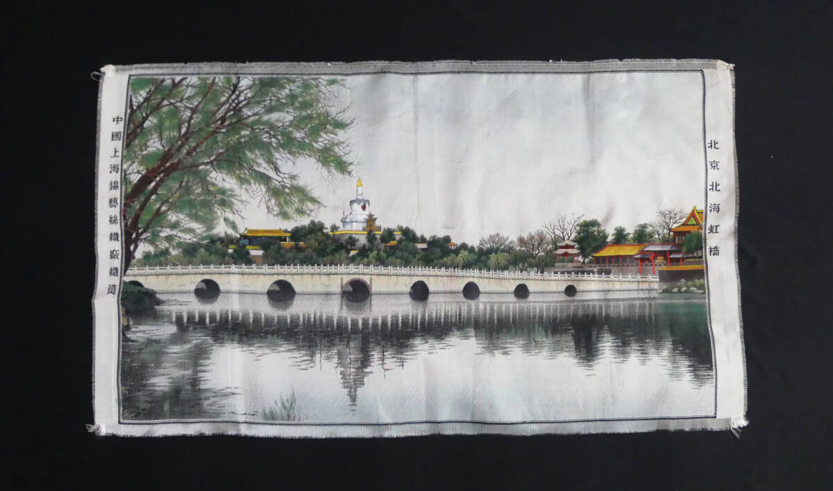 中古品 北京北海虹橋(大) 中国上海錦藝絲織廠織造 風景画 絹織物 中国シルク インテリア雑貨 タペストリ 壁掛け