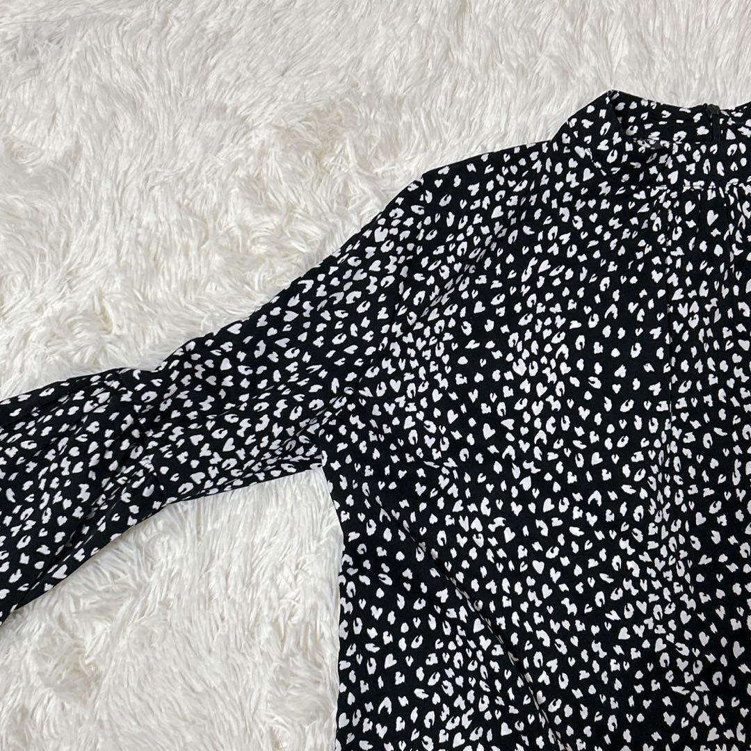 黒と白のバルーンスリーブブラウス。
