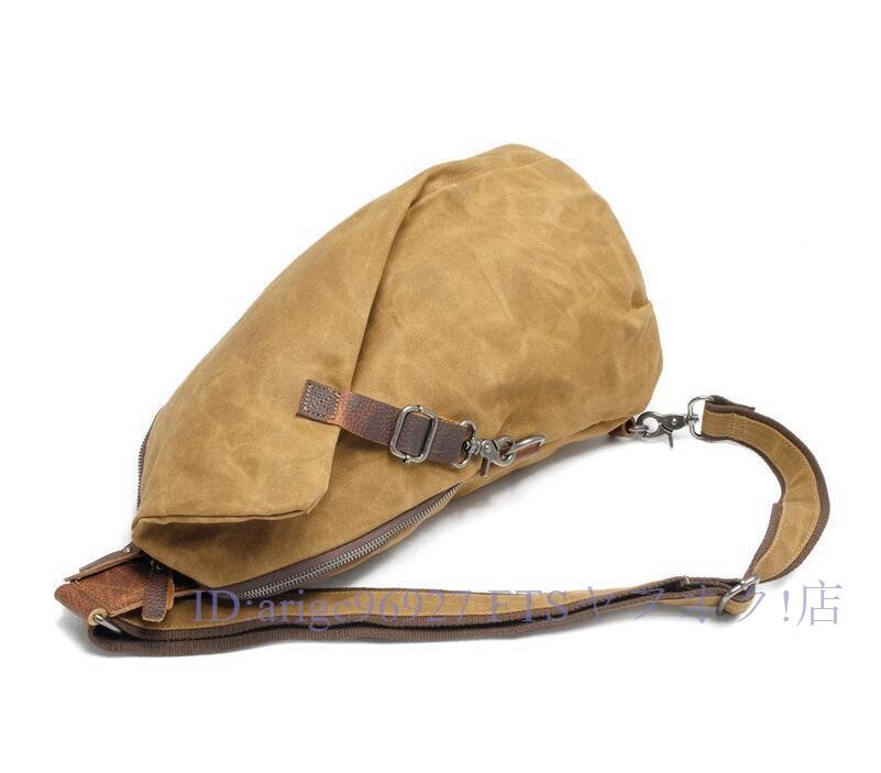 新品★お色選択可 オイルワックスキャンバス/帆布×牛革 ショルダーバッグ チェストパック ボディバッグクレイジーホースレザー 防水