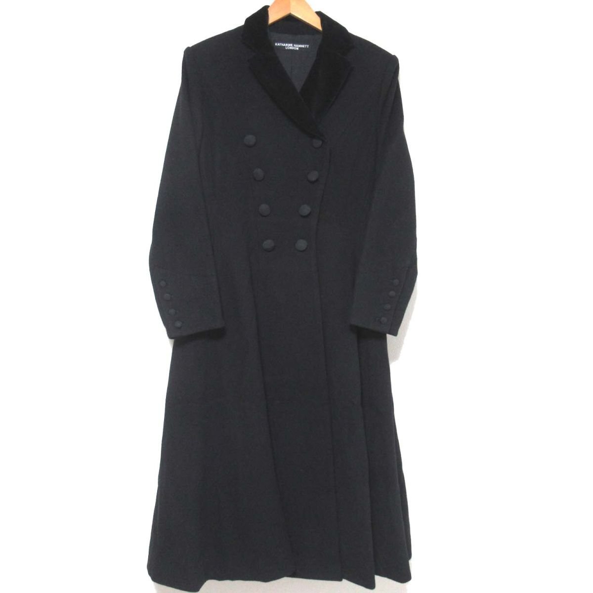 商品名:KATHARINE HAMNETT キャサリンハムネット ヴィンテージ カシミヤブレンド ベロアカラー フレア ロングコート M ブラック