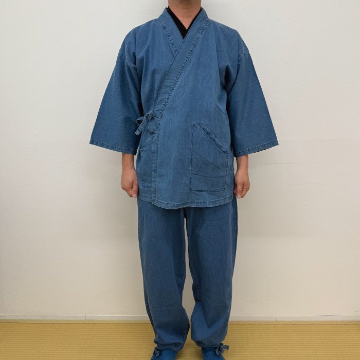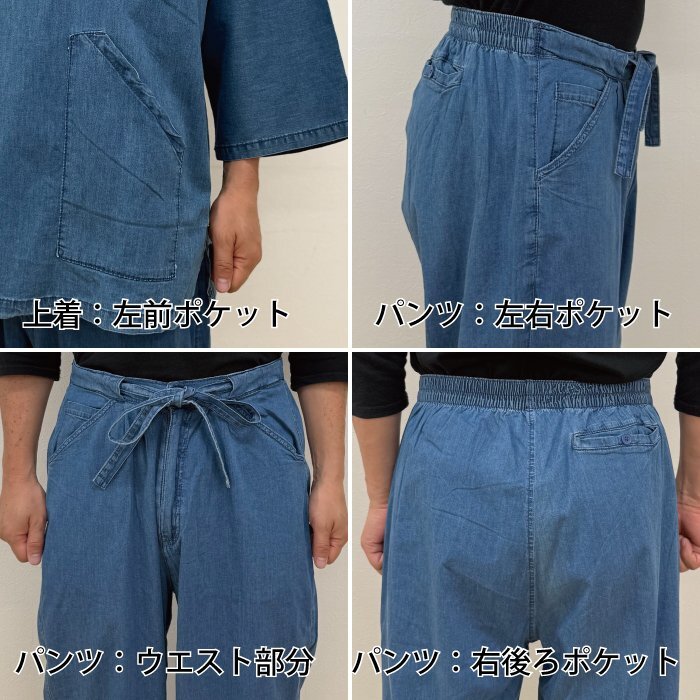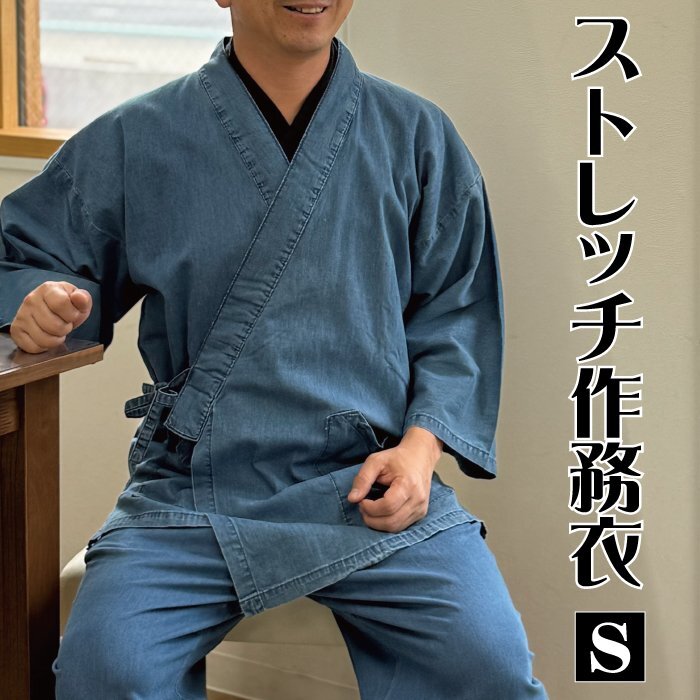 ストレッチ作務衣 Sサイズ 男 綿 メンズ おしゃれ さむえ デニム風 カジュアル 和装 父 の日 誕生日 プレゼント 贈り物 ギフト