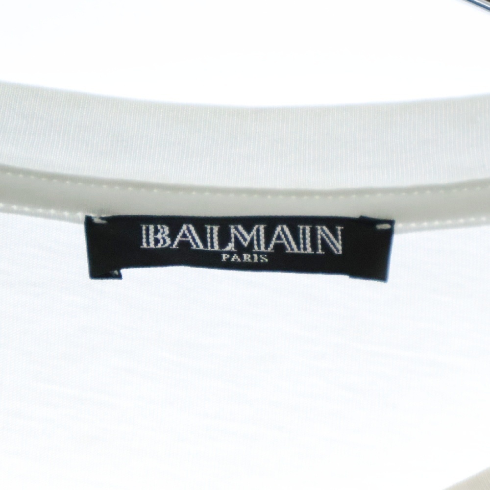 BALMAIN バルマン ショルダーボタン装飾 ロゴプリント クルーネック 半袖Tシャツカットソー ホワイト 108564 326I レディース
