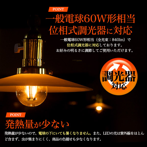 アンティークでレトロな雰囲気づくりができる、フィラメントタイプのLED電球(エジソン球)。