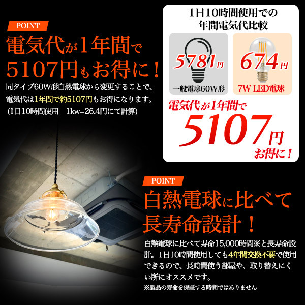 ■白熱電球に比べて省エネ、色あせ防止にもなり、長寿命設計!
