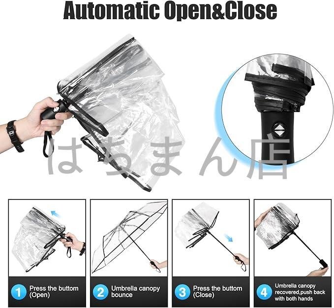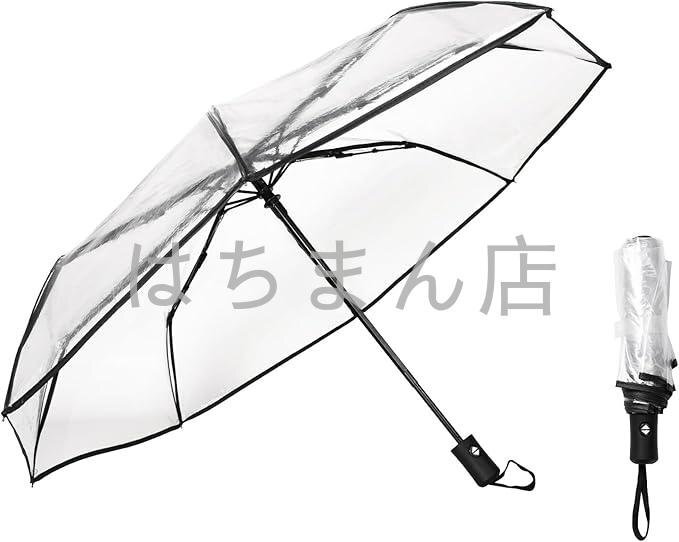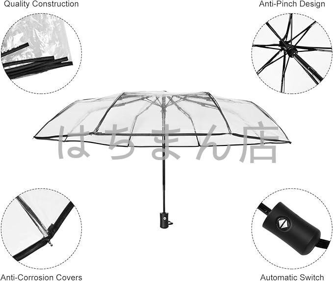 Pumwoy Clear Umrella、透明折りたたみ自動開閉トラベル傘、雨、風、雪用、クリア傘、雨用、大人、ユニ。, ブラック