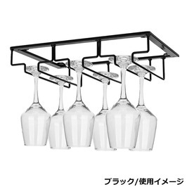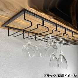 一列につき2~3個のワイングラスを掛けられます。スペースを取りがちなワイングラスを合理的に収納可能。