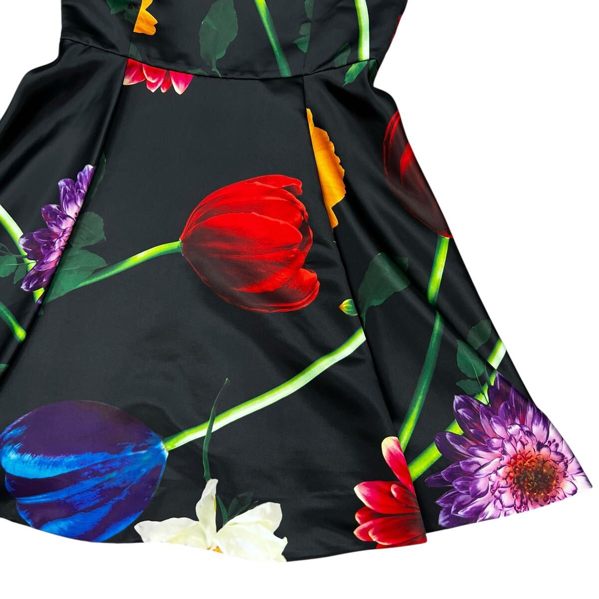 alice + olivia アリス&オリビア ワンピース 花柄 総柄 黒 ブラック フレア ノースリーブ レディース