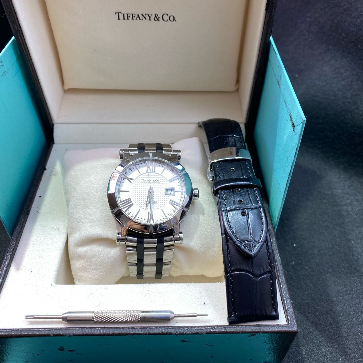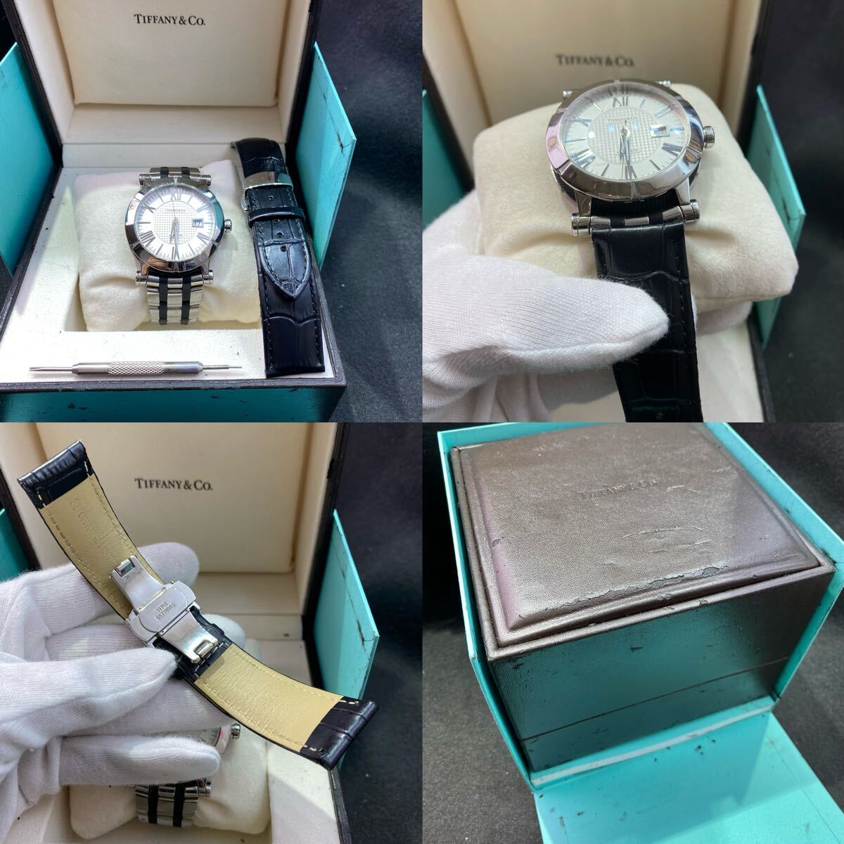ブレスレット全体的に擦れ綺麗な状態です。社外品の革ベルト1本サービスさせていただきます。