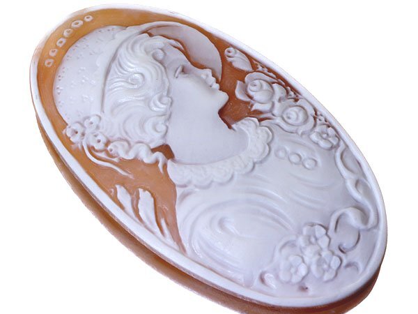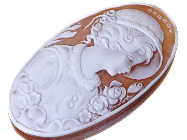 お洒落な貴婦人と花の彫刻が素敵な高級シェルカメオルースを激安価格で特別大放出致します!