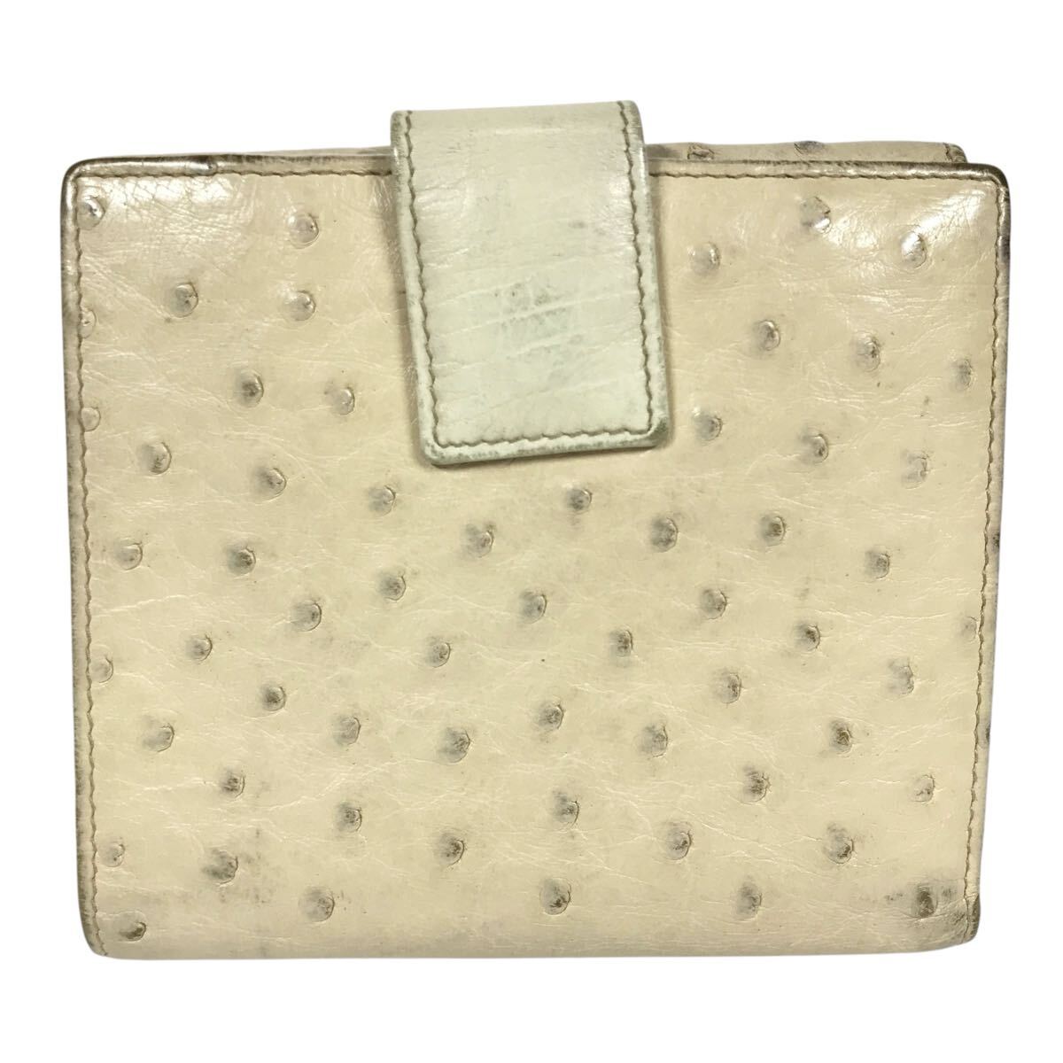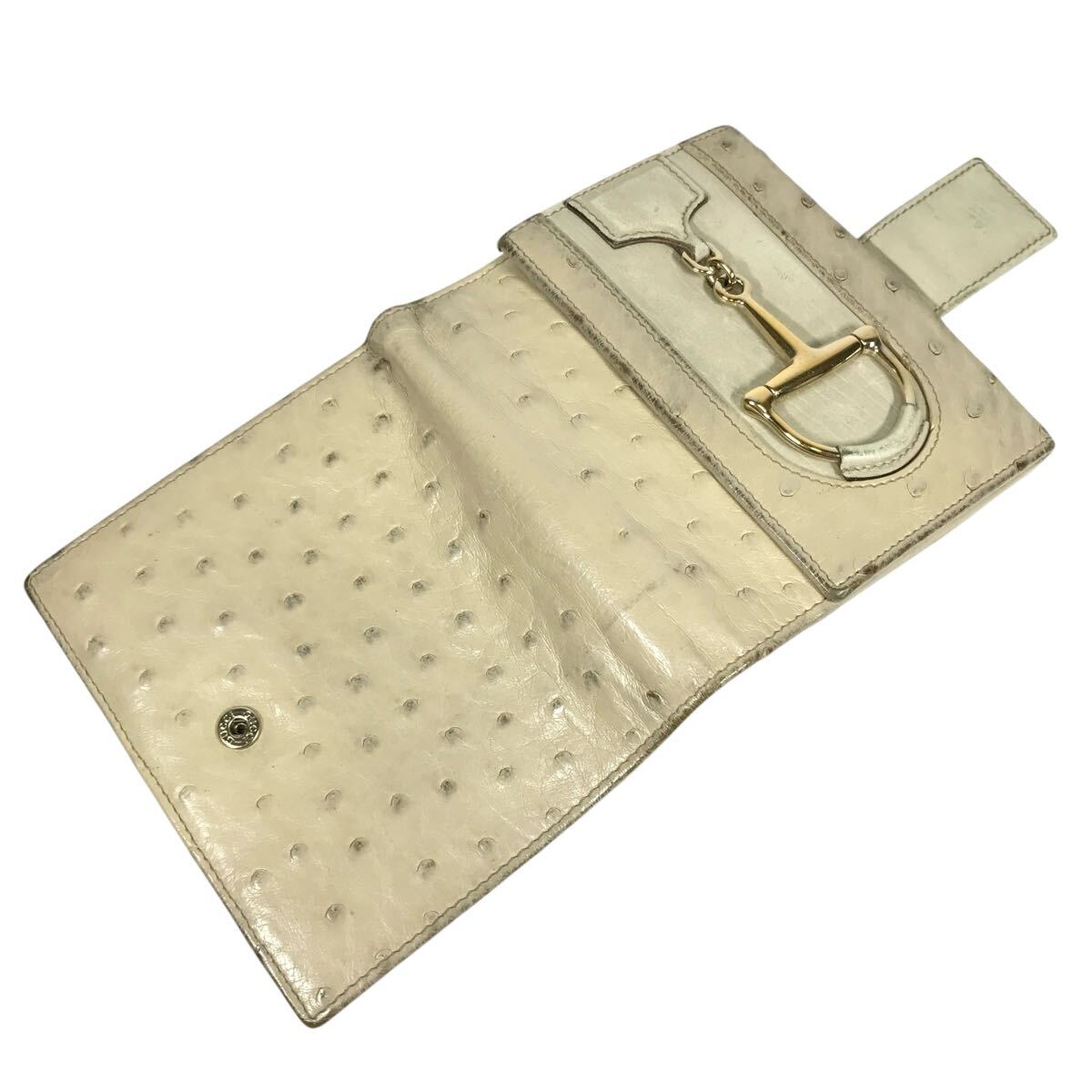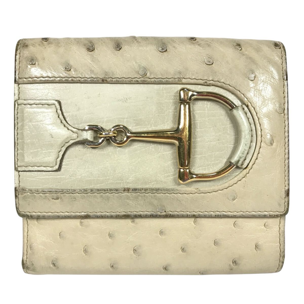 【グッチ】本物 GUCCI オーストリッチ ホースビット 2つ折り財布 Wホック コンパクトウォレット 小銭入れ有り 駝鳥 メンズ レディース 伊製
