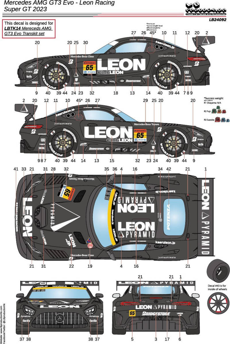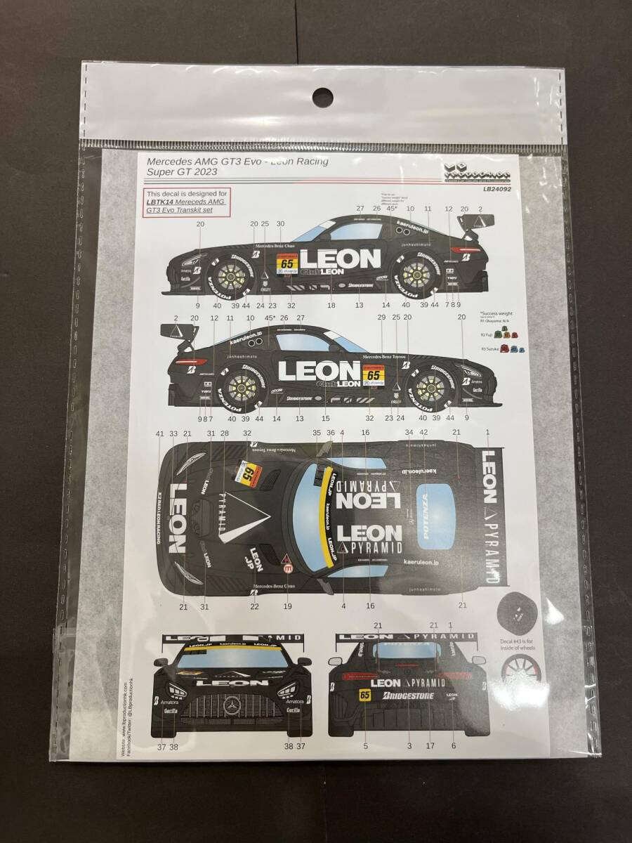 24092 1/24サイズ LB PRODUCTION 製シルクスクリーンデカール メルセデスAMG GT3 Evo レオンレーシング Super GT 2023
