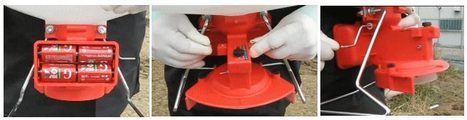| ■乾電池使用で10Lタンク ※電池は4本または2本で稼働します。 ■シャッターつまみを開くと羽車が回転します。 ■左右60度範囲内で調整が可能です。 |