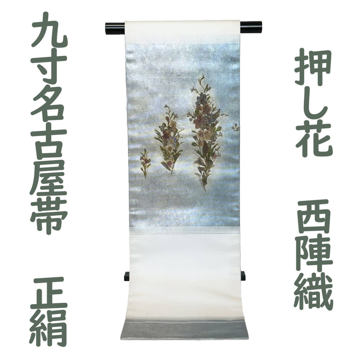 ★九寸名古屋帯 正絹 京都西陣織 お太鼓柄 天然 押し花 花香織 カジュアル 仕立て上がり 送料無料★