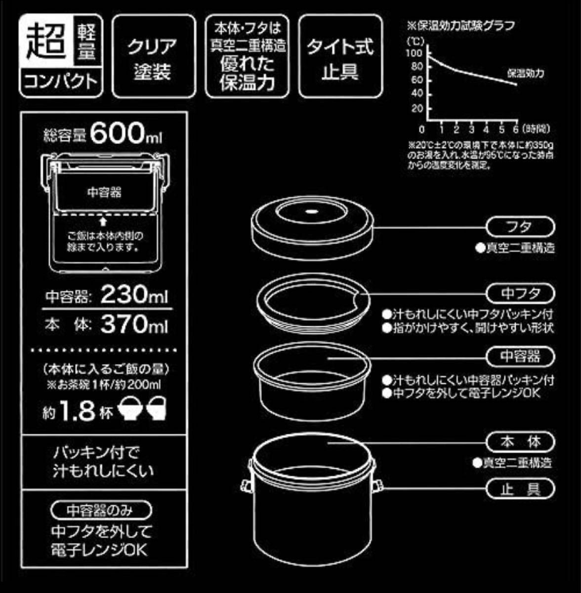 保温効力:56度以上(6時間)保冷効果:10度以下(6時間)