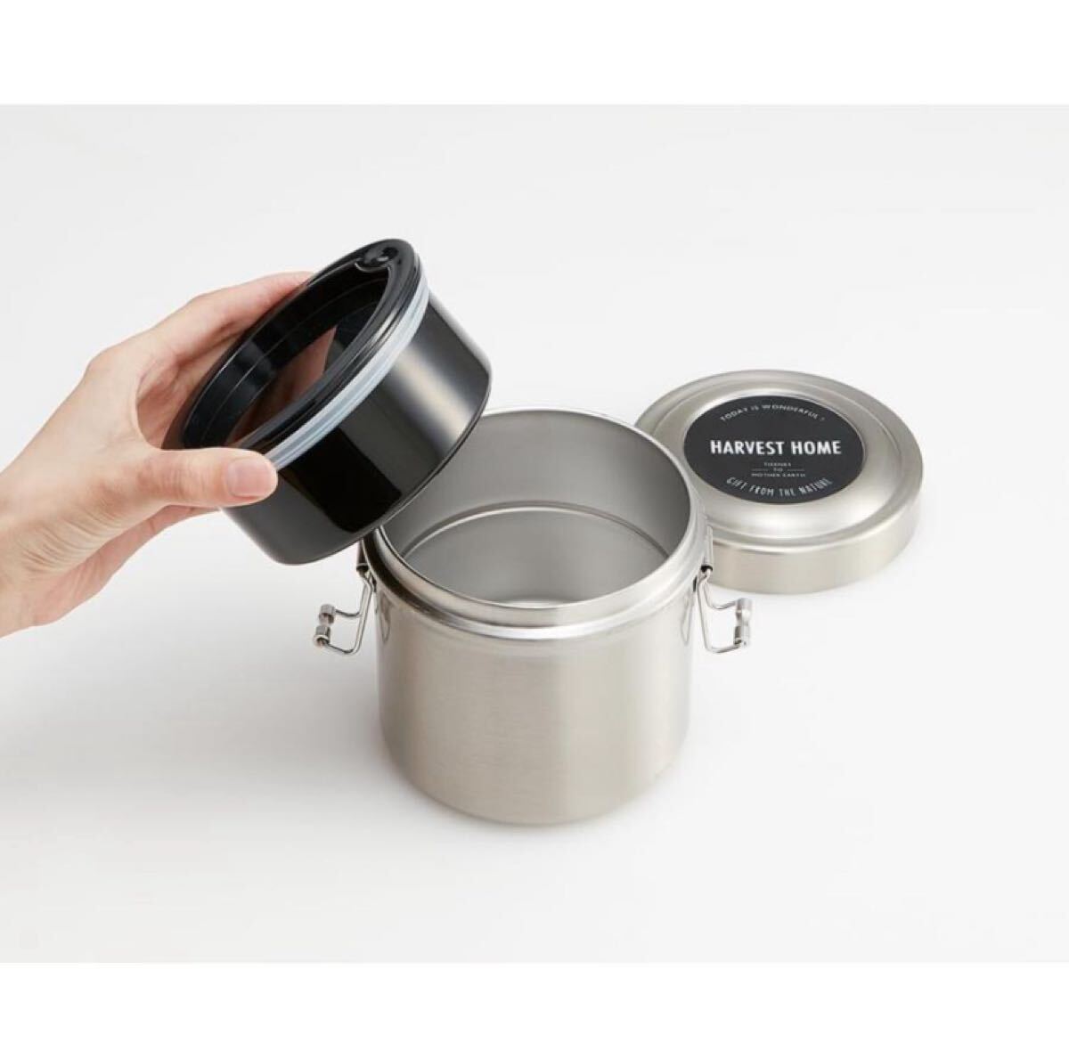 素材・材質:本体・フタ=ステンレス(アクリル樹脂塗装) 止め具=ステンレス 中容器・中フタ=ポリプロピレン パッキン=シリコーンゴム 底板=エラストマー