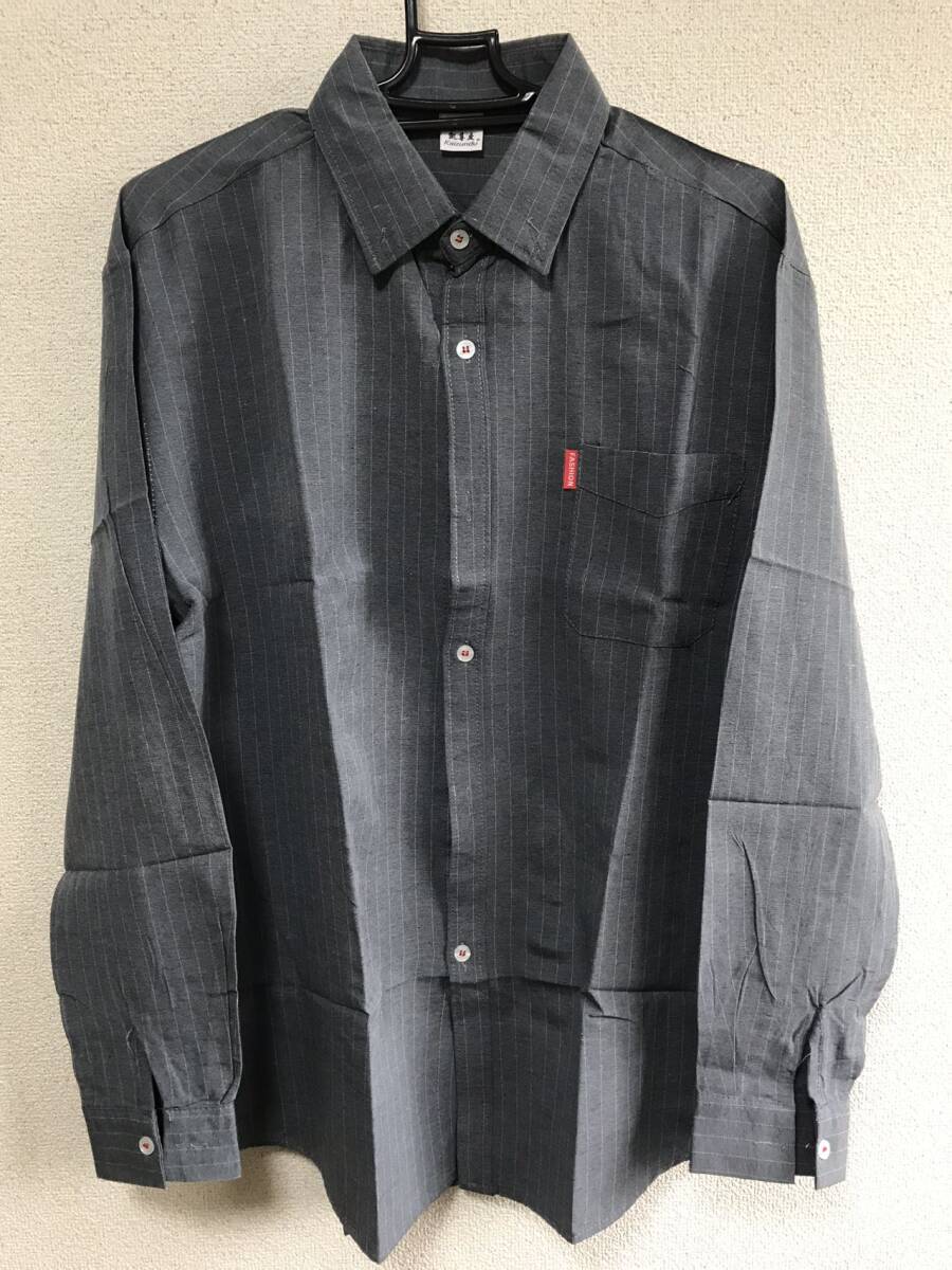 シャツ メンズ 長袖 ストライプ柄 シャツ 無地 カジュアル XL