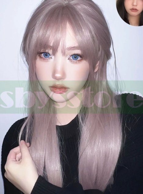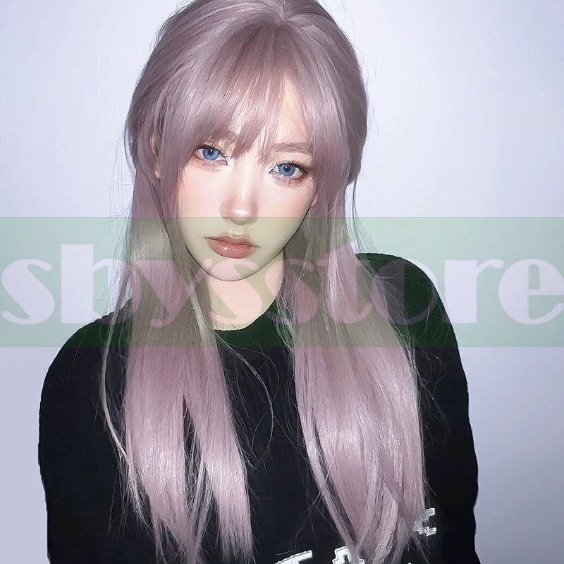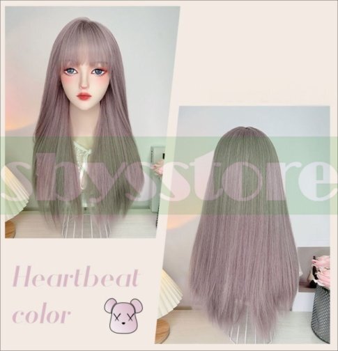 ウィッグ 女性 ロングヘア インフルエンサー風 グループスタイル グレイパープル ロングストレート ファッション 擬似真人髪 全頭セット
