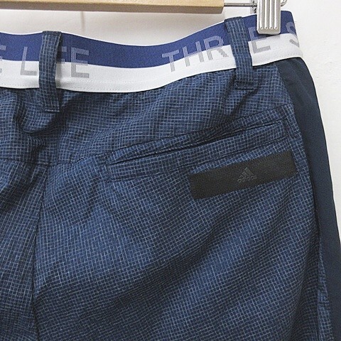 アディダス adidas スポーツウエア パンツ ストレート ロング ゴム チェック 別布 無地 青 紺 ブルー ネイビー 82 メンズ