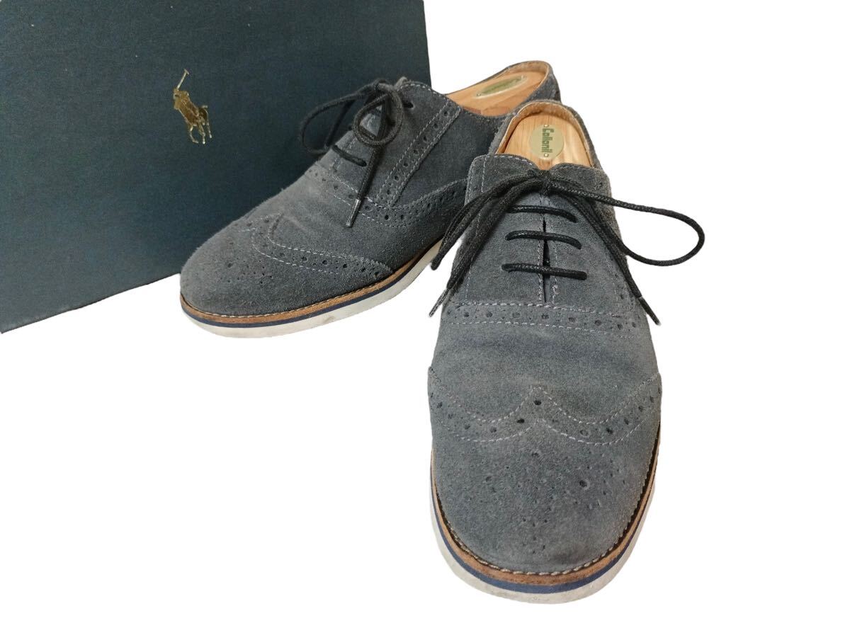 (D) POLO RALPH LAUREN ラルフローレン スエード レザー ウイングチップ シューズ 7.5 グレー系 JAMFORD