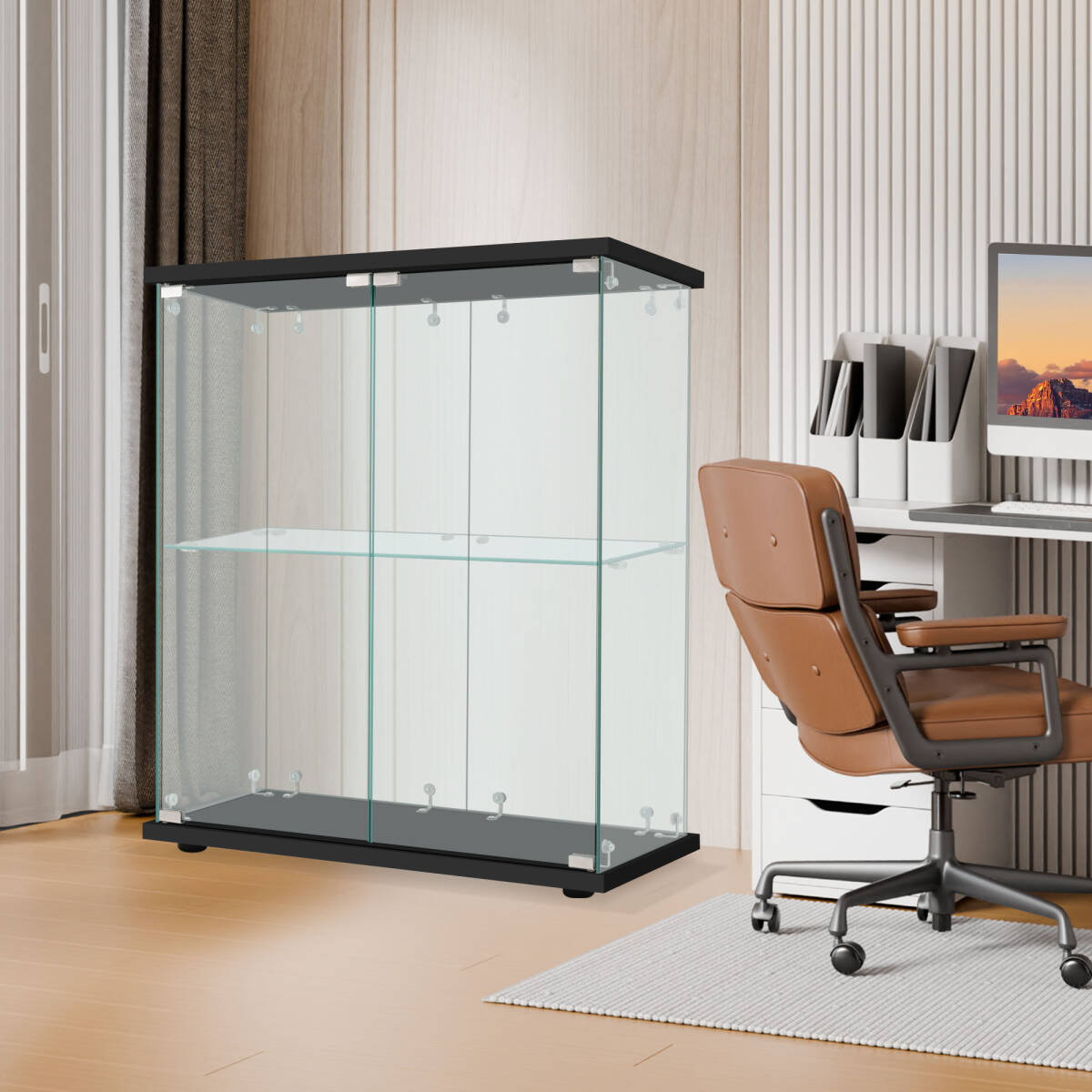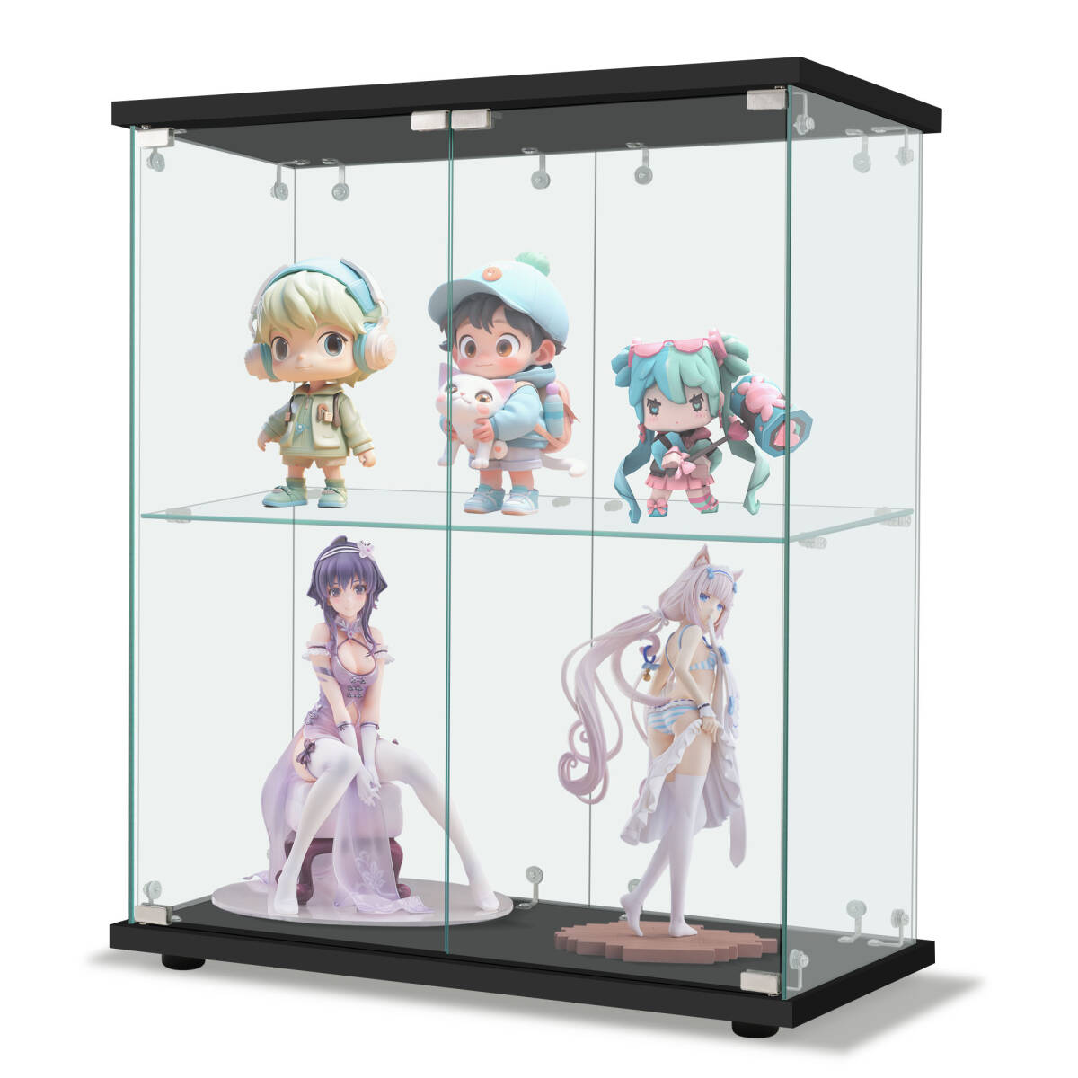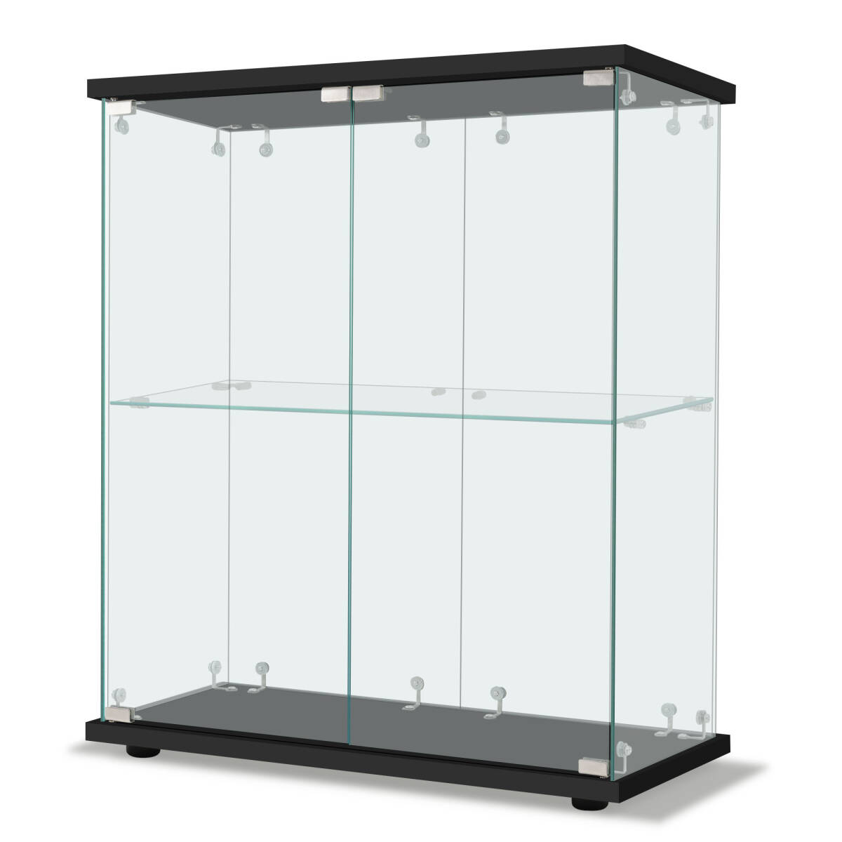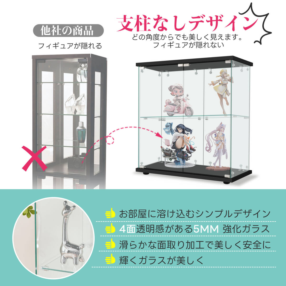 コレクションケース 両扉タイプ 大型 ワイドタイプ ガラスディスプレイキャビネット 2段 サイズ:幅80.5×奥行36.5×高さ86cm ブラック
