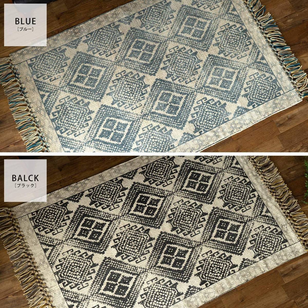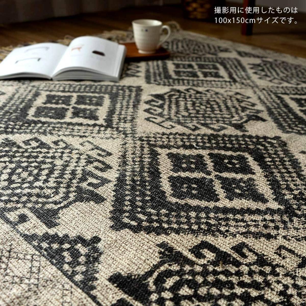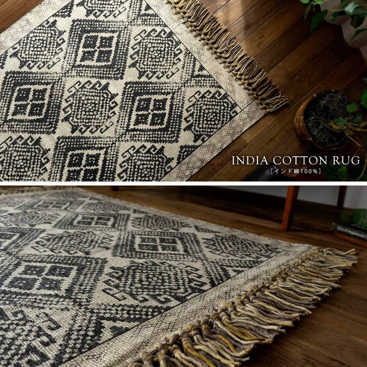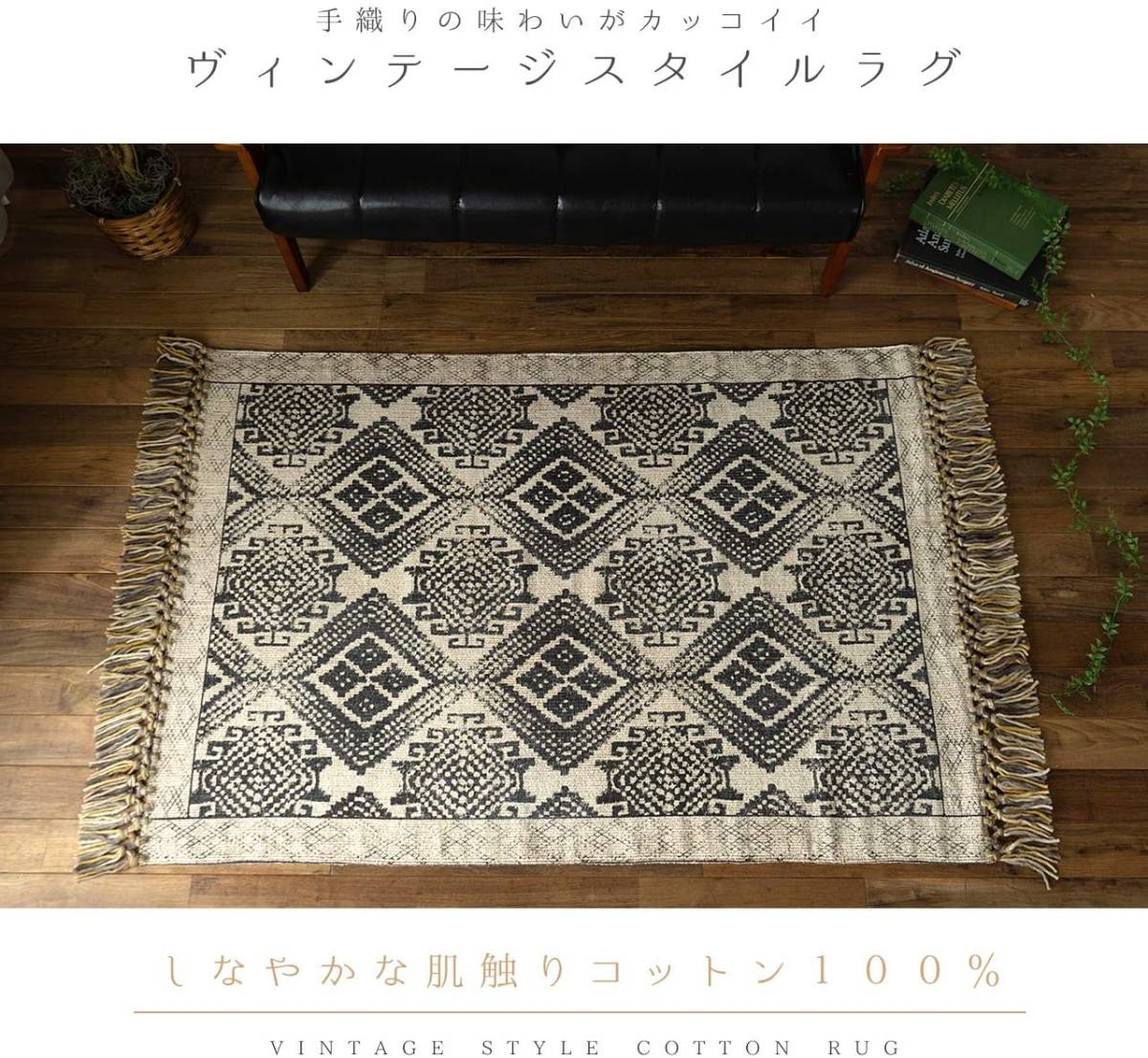 [送料込み] 洗える キリム柄 手織り ラグ マット 100x150 ブラック 綿 カーペット ラグ おしゃれ リビング ヴィンテージ 寝室 居間