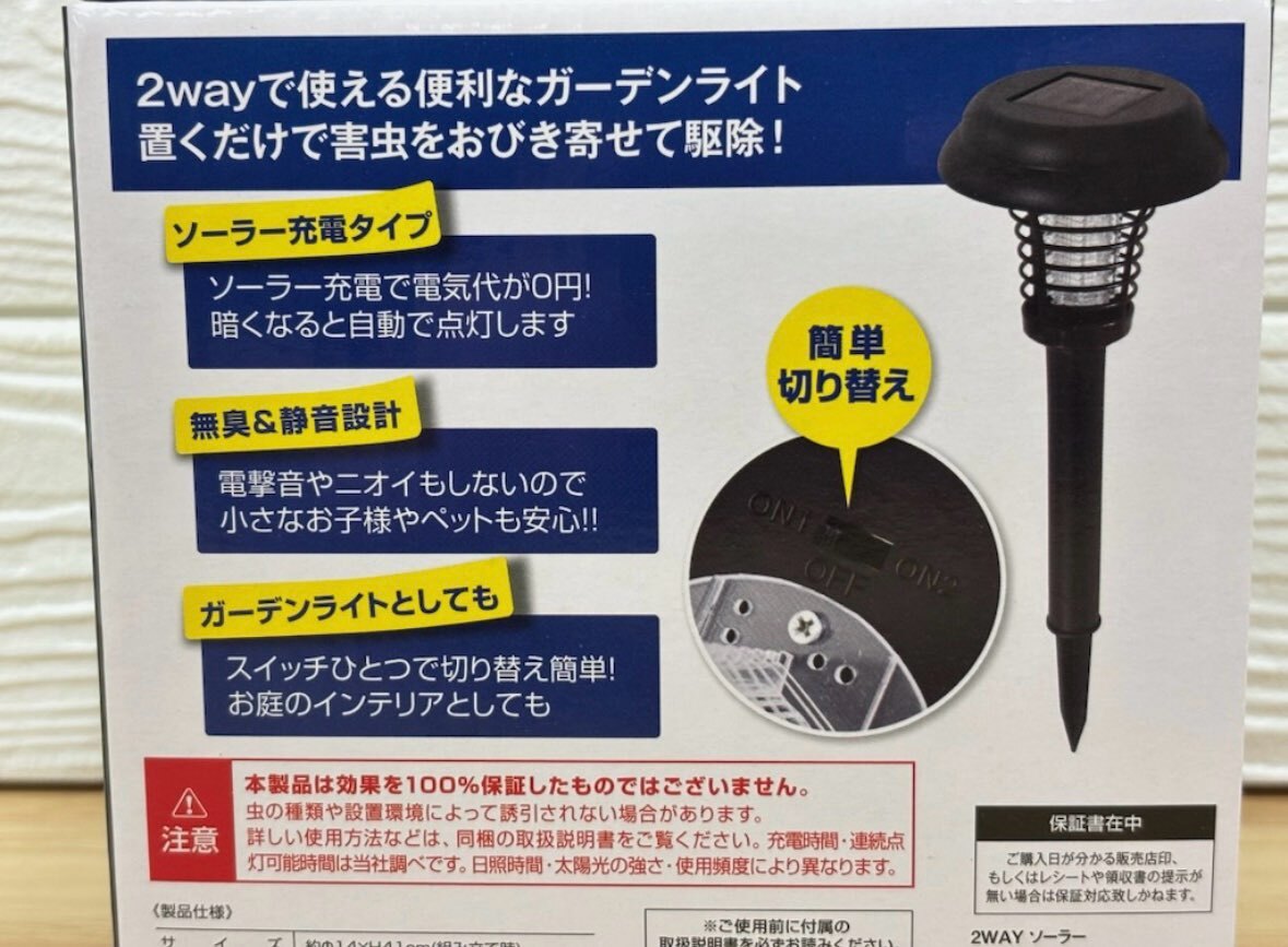 害虫が多い庭先や花壇、玄関まわりに最適な屋外ライトです。