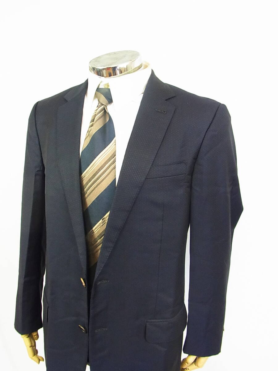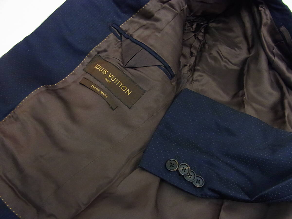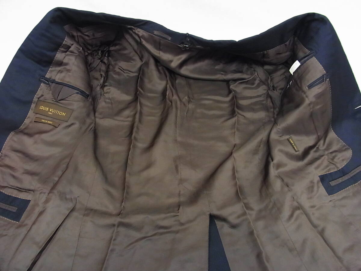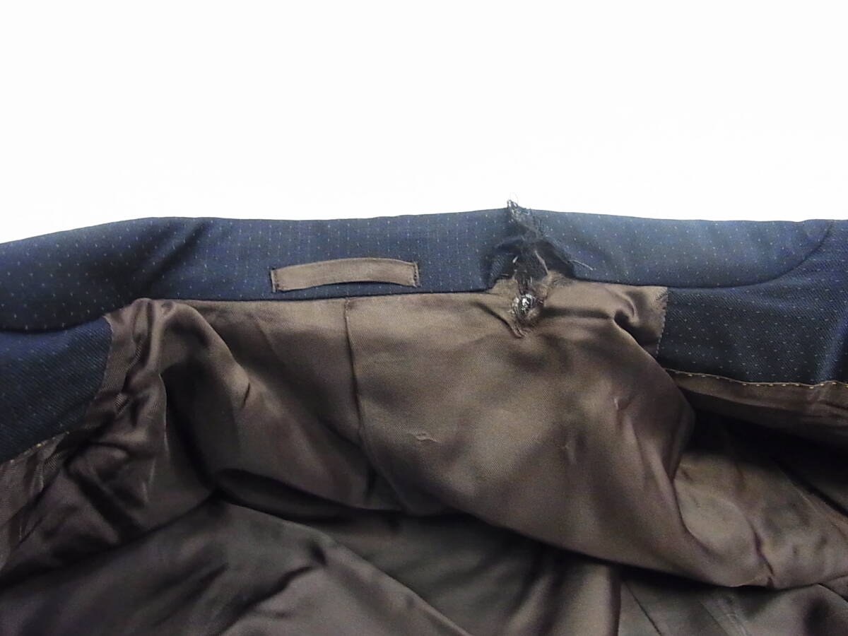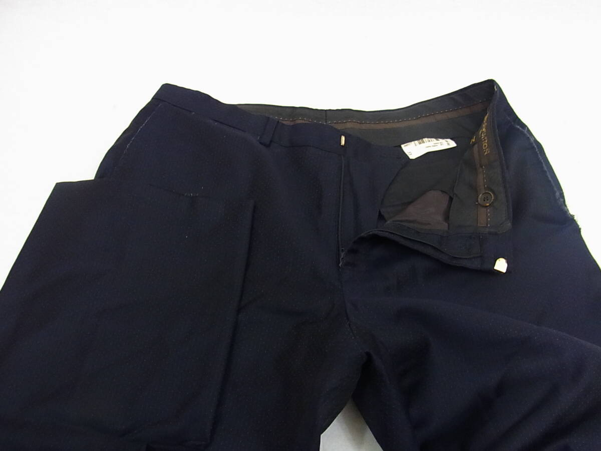 ルイヴィトンのスーツ使用品です。 サイズは52、着丈76cm(センターベンツの総裏)・肩幅47cm・袖丈63cm・身幅53cm、ウエスト82cm(+7cm出し可能)・股上26cm・股下75cm・裾幅21cmのシングル仕上げになります。 素材はウール100%、状態はジャケットの襟にダメージ・パンツのポケットや裾にすり切れがあるなど あまり状態は良くありませんのでご了承下さいませ。この機会に是非どうぞ☆ 商品管理番号(55002) 7-77 | |