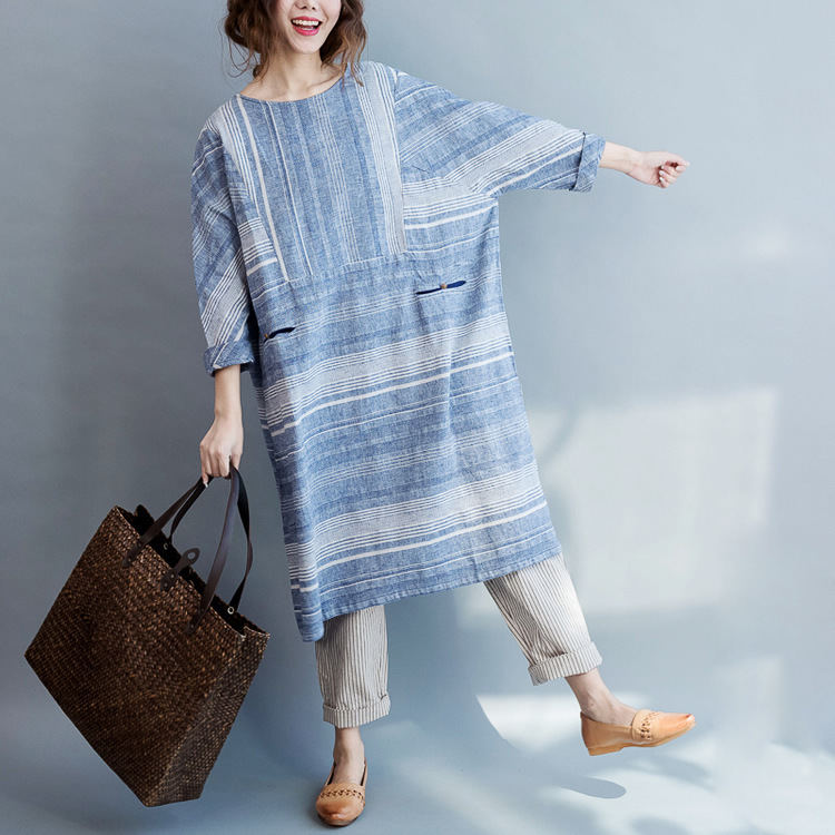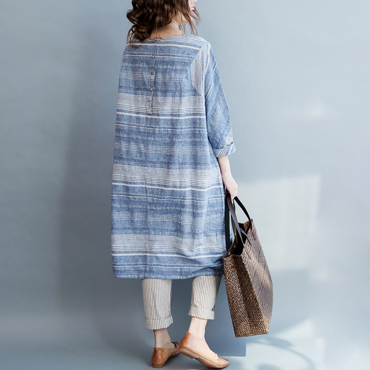 夏らしいストライプがおしゃれなチュニックワンピ★新品★大きいサイズ★後ろボタン涼し気ワンピ