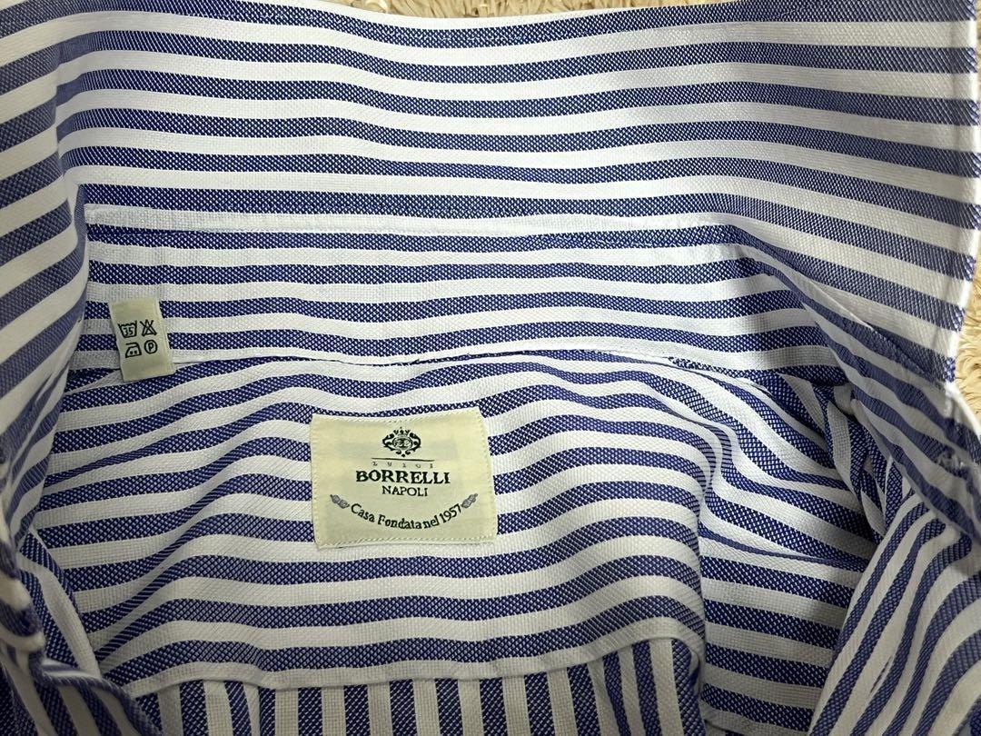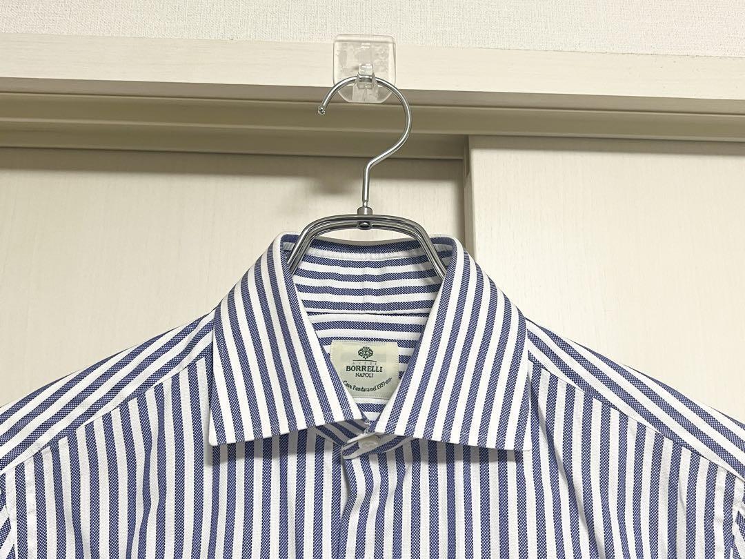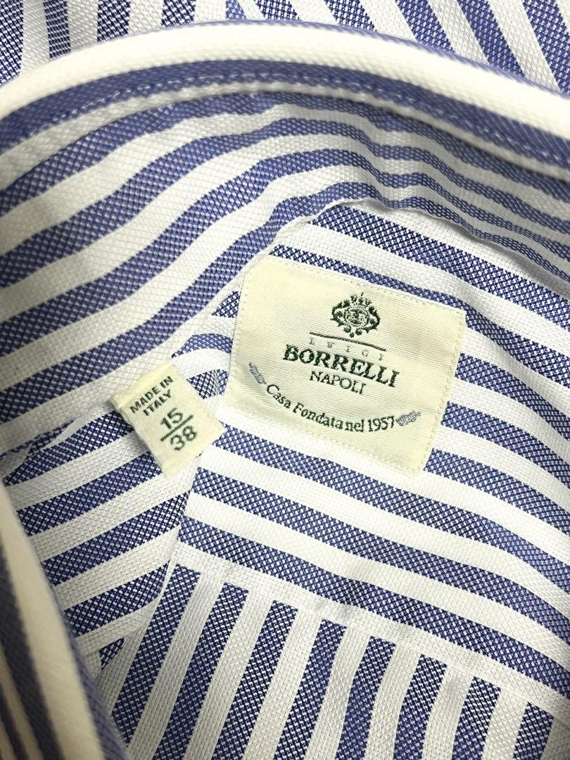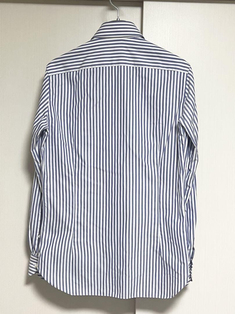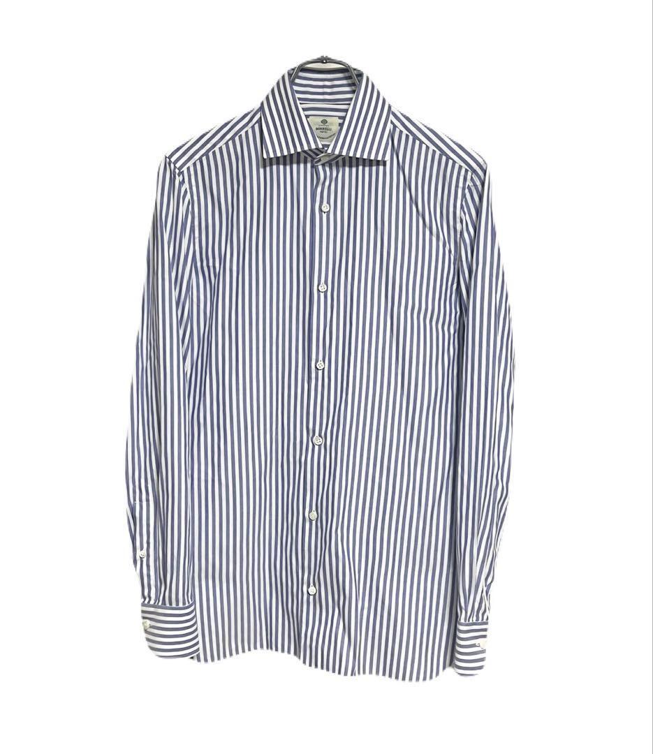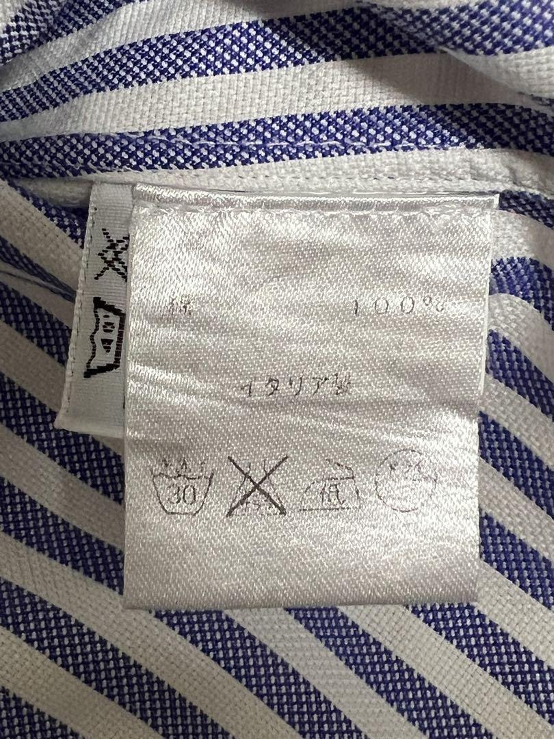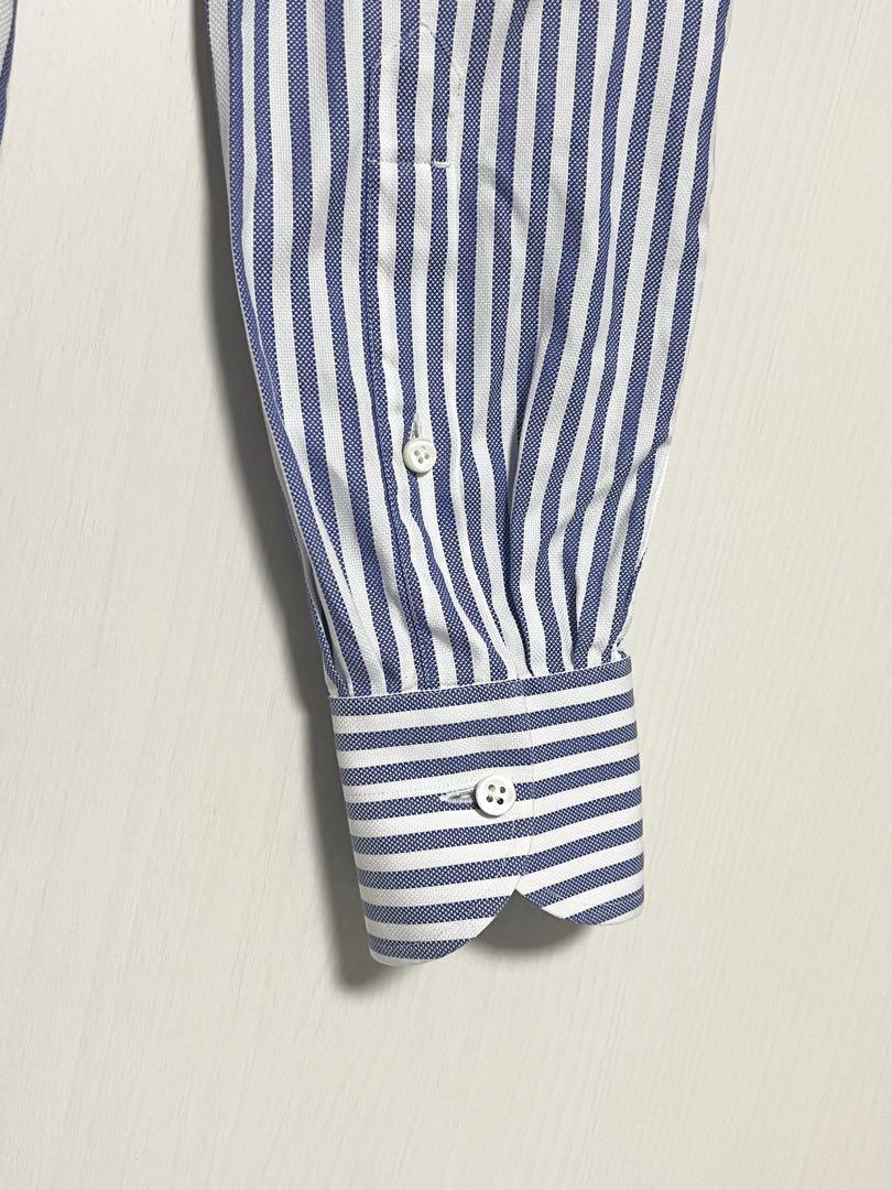 即決★良品 イタリア製 LUIGI BORRELLI★38 コットンワイドカラーシャツ ルイジボレッリ 青 ブルー ロンドンストライプ クラシコ ビジネス